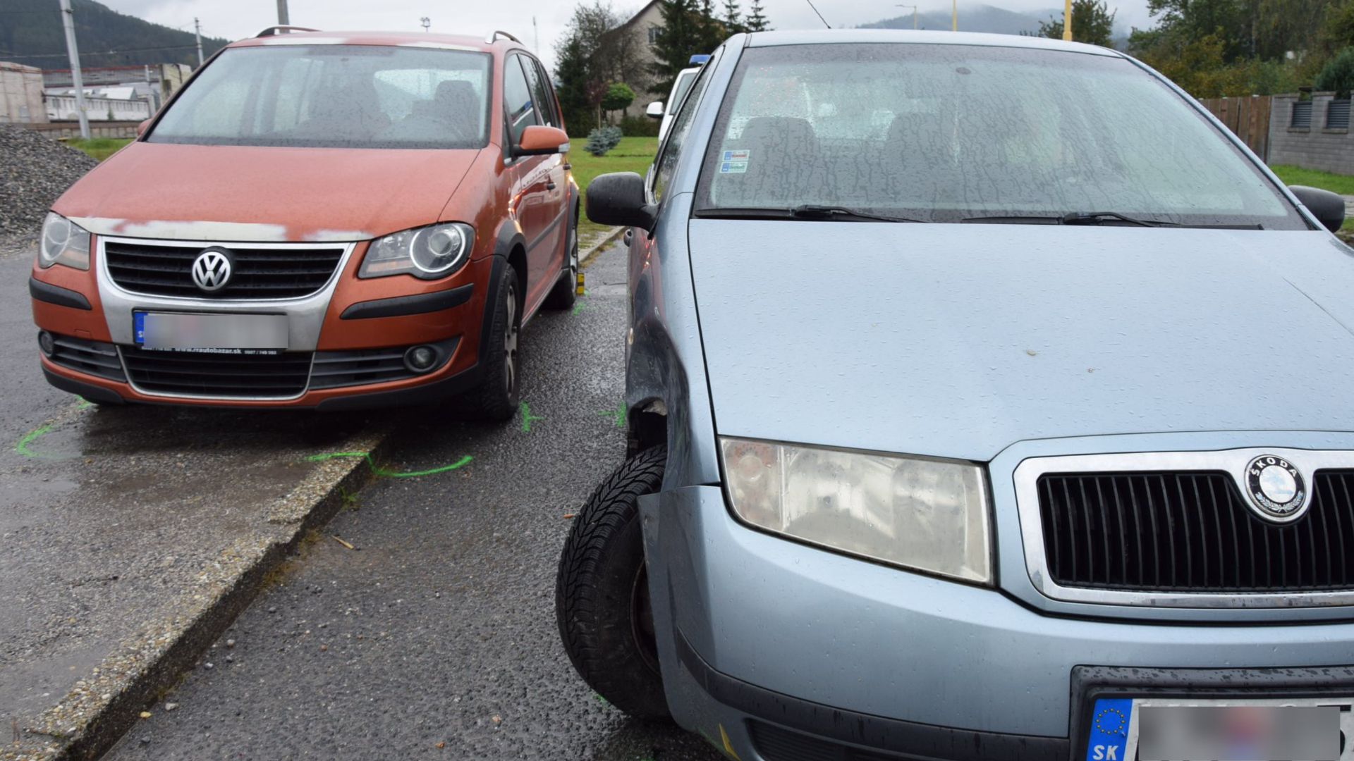 Vodič auta Škoda Fabia z nezistených príčin narazil do zaparkovaného auta značky Volkswagen.