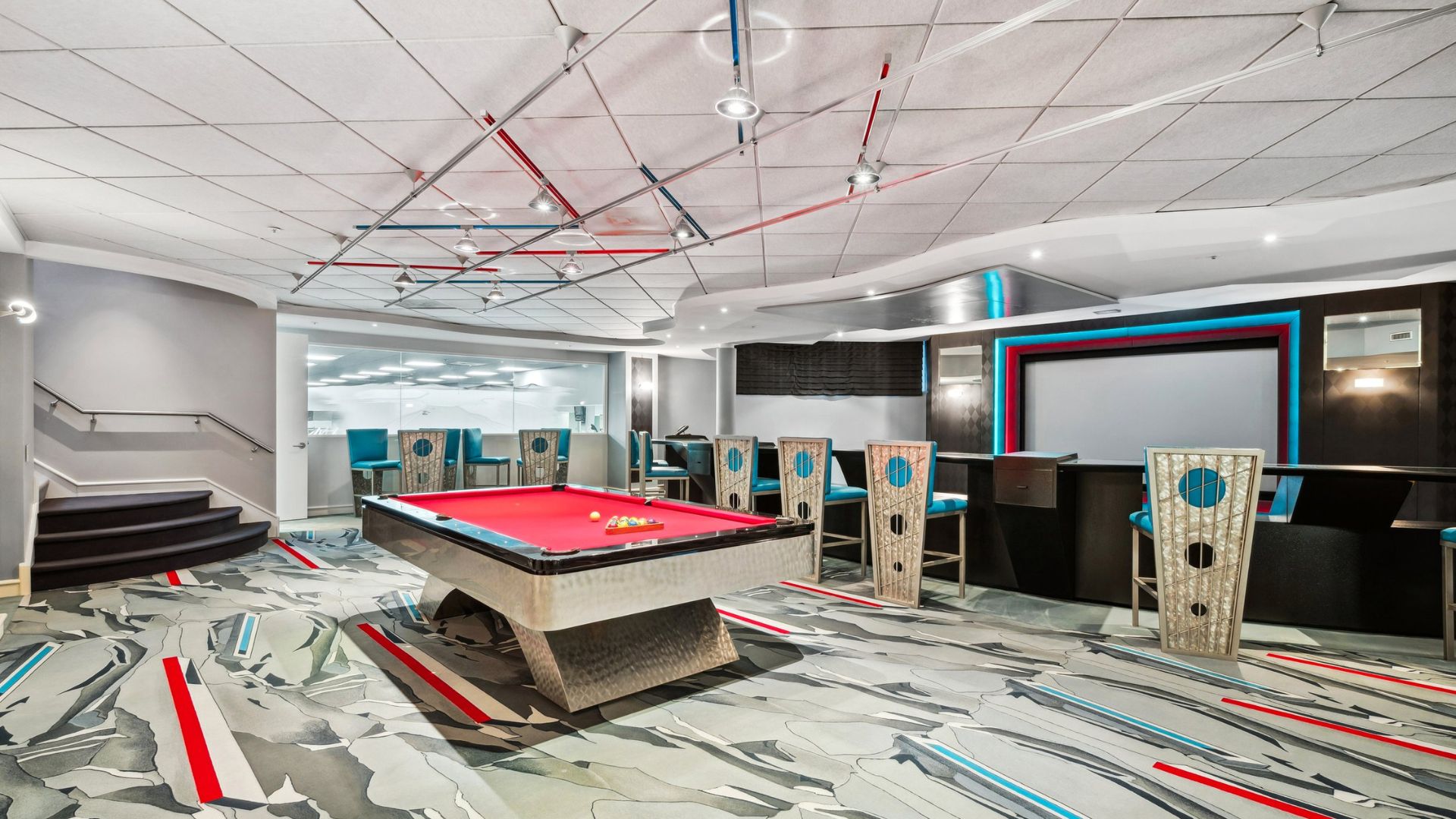 Biliardový stôl je dominantou miestnosti, kde nájdeš aj veľké domáce kino.