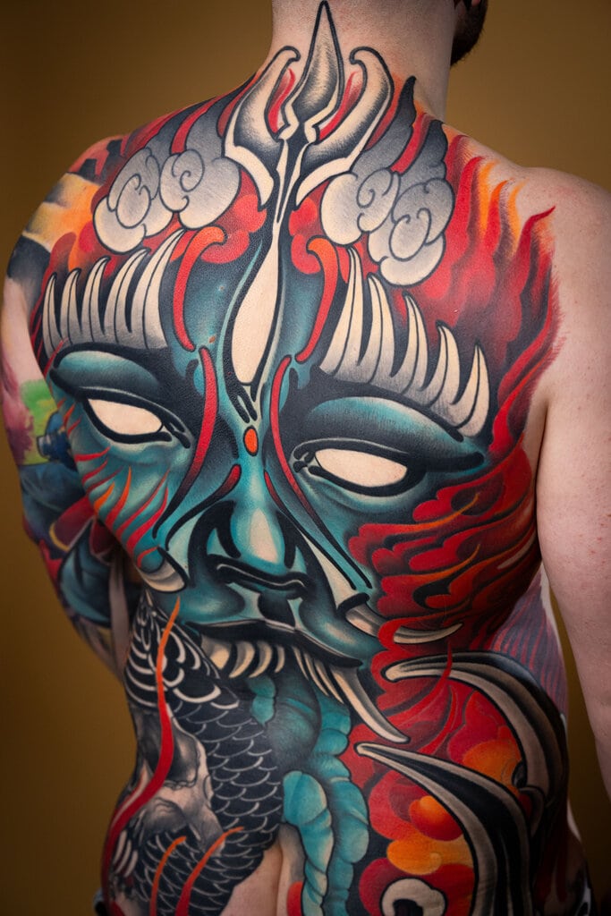 Tetovania sú výrazne farebné.