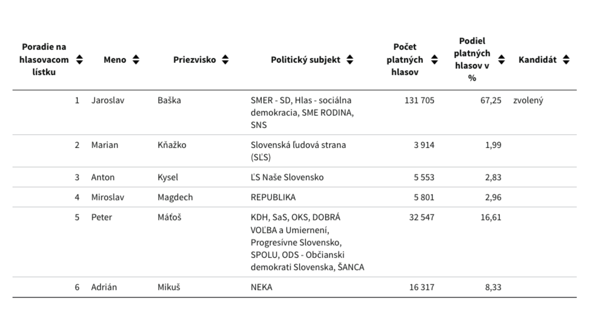 Kandidáti na predsedu Tenčianskeho kraja s platnými výsledkami