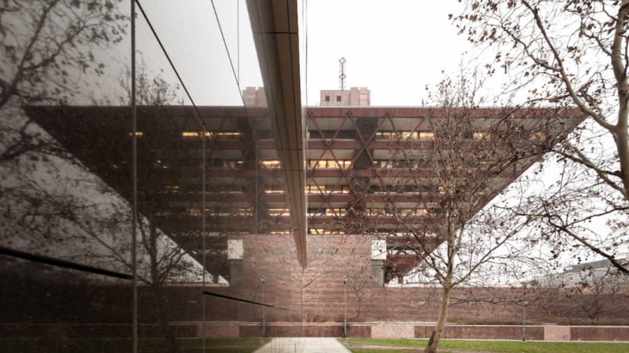 Poznámka: v prípade hlbšieho záujmu o budovu odporúčame prečítať výpravnú knihu „Prečo pyramída/Why pyramid“ od Štefana Bekeša, ktorá vyšla minulý rok vo vydavateľstve Spektrum STU.