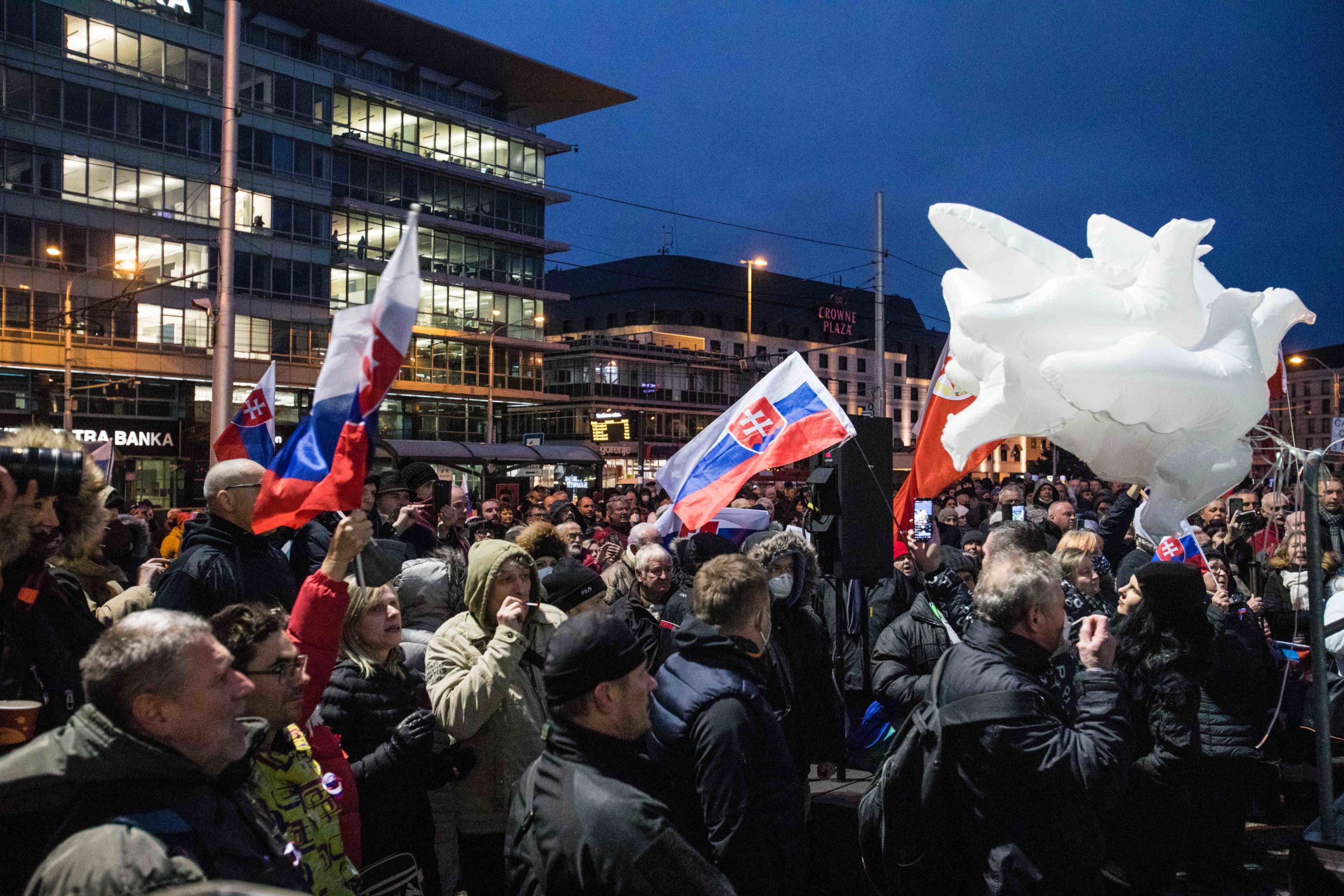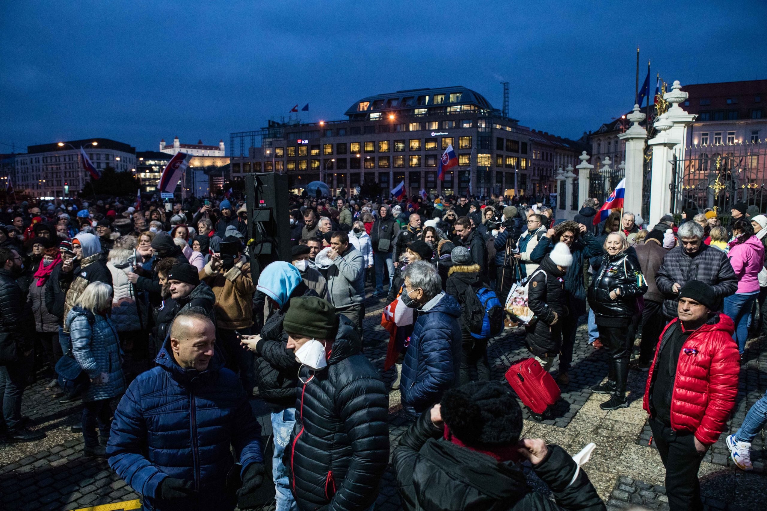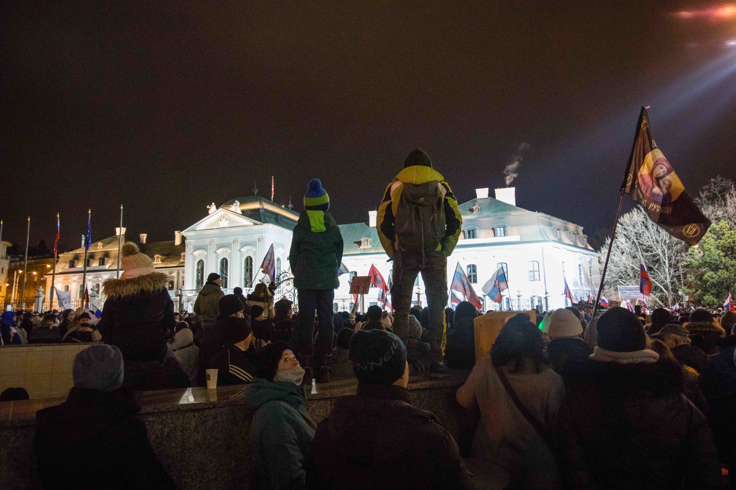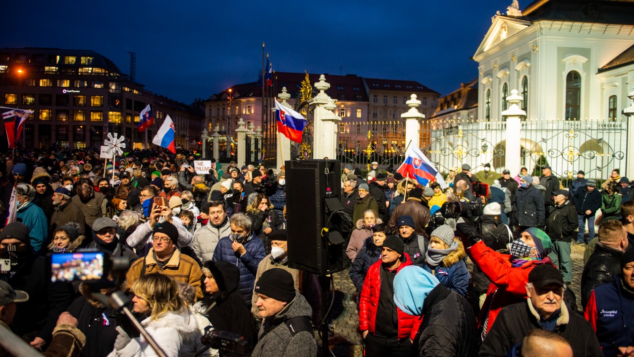 Pred Prezidentským palácom sa zišli v stredu podvečer ľudia, aby protestovali proti vláde, obrannej dohode s USA, povinnému očkovaniu či zdražovaniu cien potravín a energií.