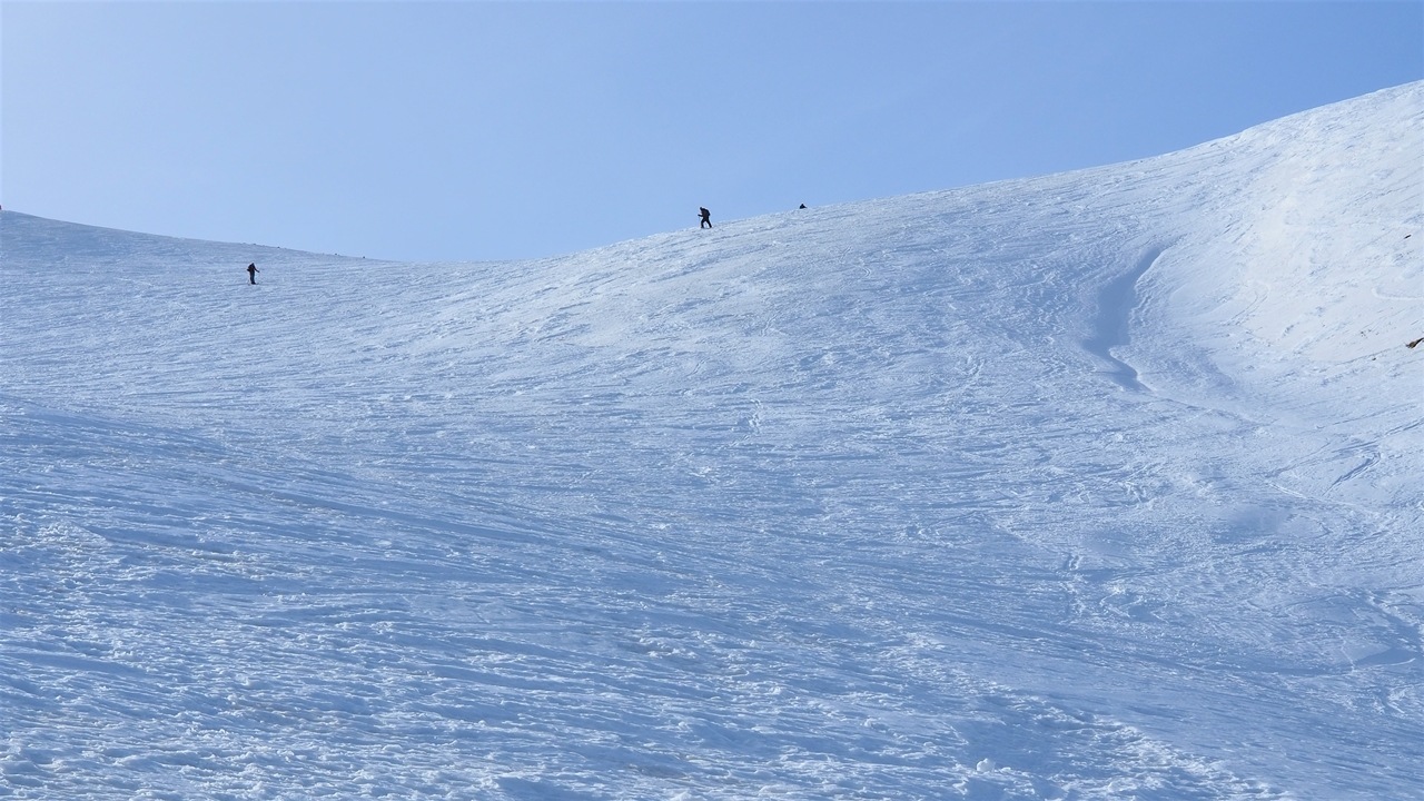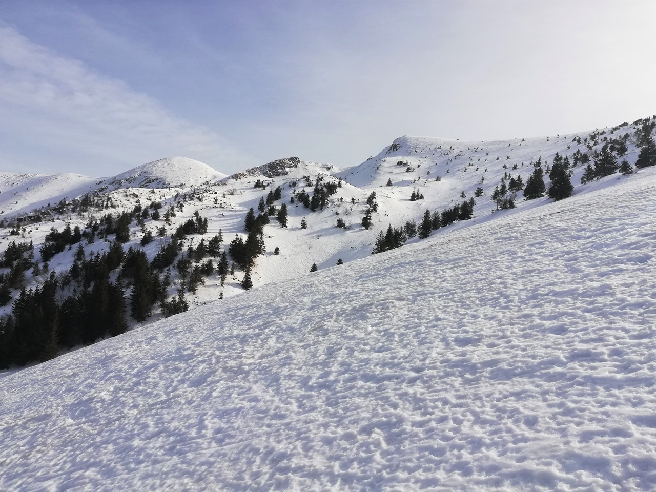 Na niektorých stranách, kde slnko cez kopce toľko nedočiahne, či na najvyšších vrcholkoch sa ešte slušná vrstva snehu stále zubami-nechtami drží a odmieta sa pustiť. Dôkazom toho sú aj skialpinisti, ktorých sme pravidelne stretávali. Bežných turistov bolo veľmi málo. Spočítali by sme ich na dvoch rukách. Na naše prekvapenie, sme ešte natrafili na splitboardistov. U nás ešte stále pomerne neznámy hybrid skialpových lyží a snowboardu.