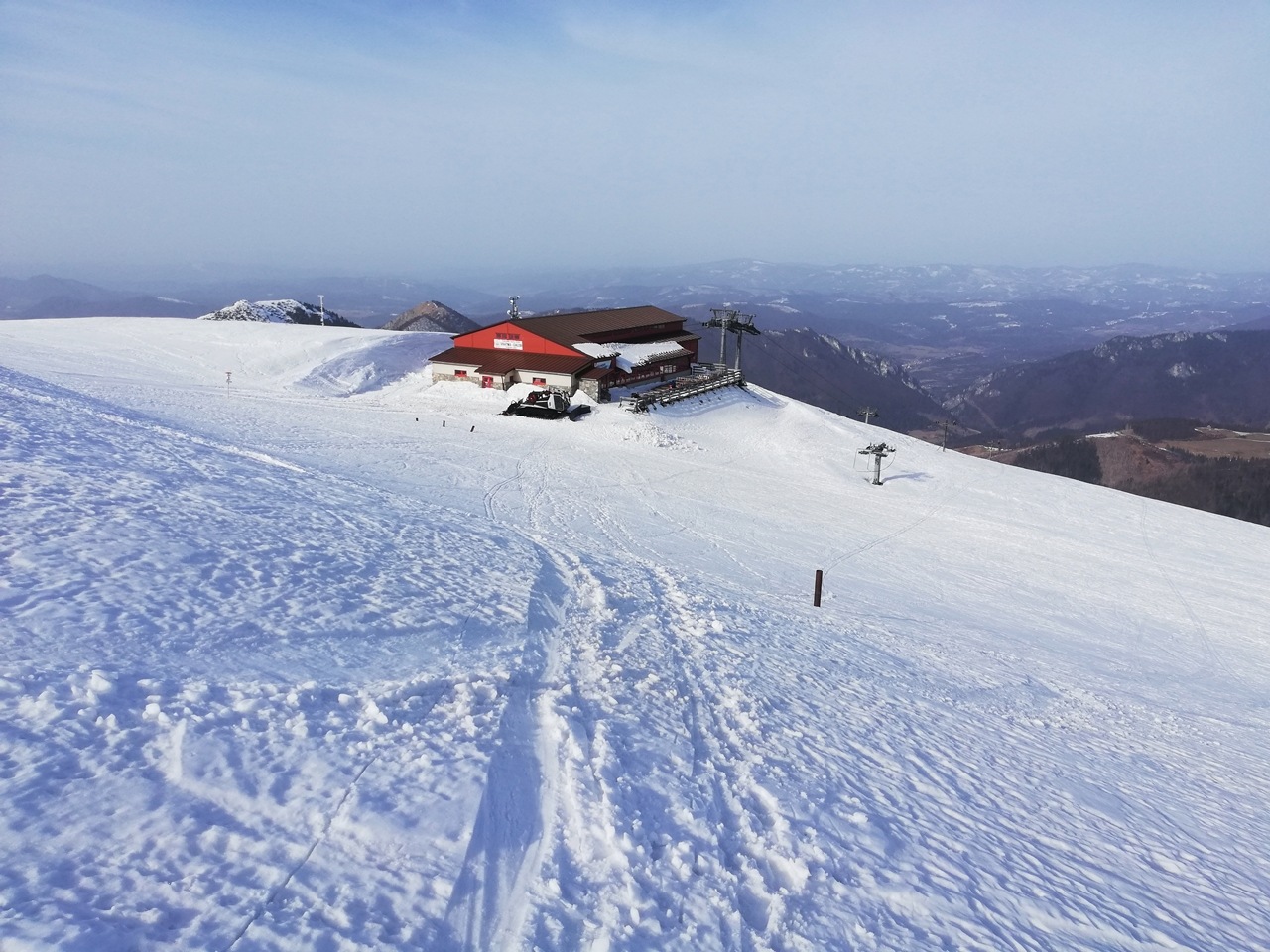 Po troch hodinách námahy (mali sme aj dlhšiu prestávku na piknik) sme sa konečne dostali hore – na Snilovské sedlo, kde lanovka končí. Tajne sme dúfali, že budú mať otvorené a dáme si tam kávu. Opatrenia zjavne prišli aj na hory, stanica bola zatvorená, káva sa nekonala.