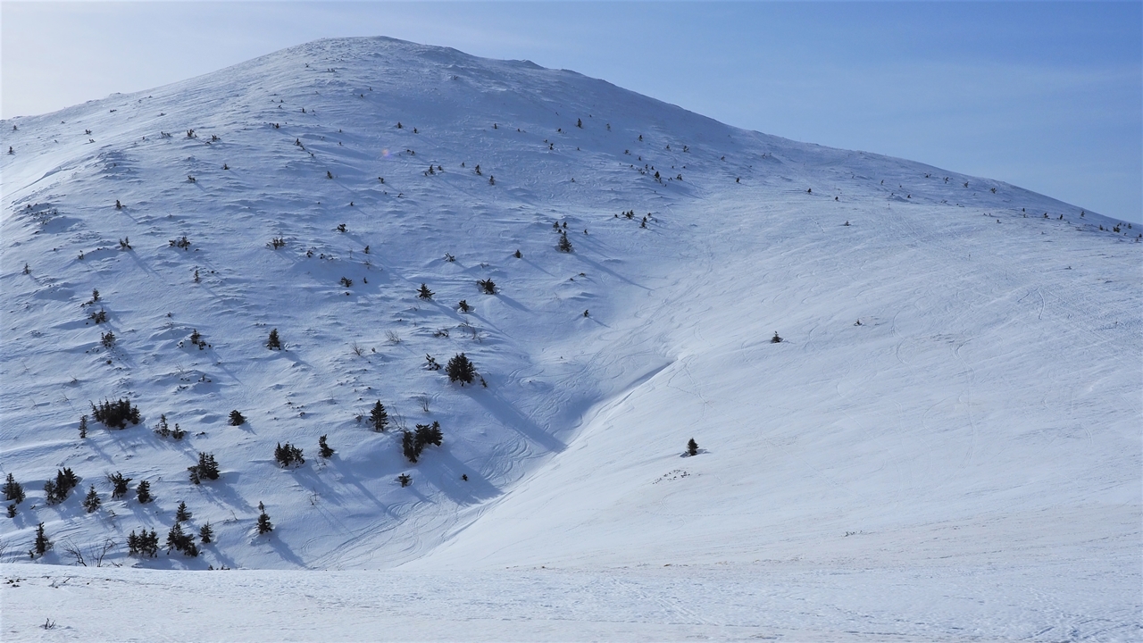 Hoci som presne túto cestu hore absolvoval už niekoľkokrát a vedel som, že je to strmé a dosť namáhavé, včera to bolo ešte horšie. Topiaci sa sneh výrazne sťažil výstup. Voda, na ktorú sa cez deň mení, tu v noci ešte zamŕza. Museli sme párkrát (obzvlášť v lese) čeliť zľadovatenému terénu. Horšie bolo, keď sme z lesa vyšli a na zmäknutom snehu sa doslova prebárali a brodili. Vďaka teplotám v posledných dňoch už nebol taký pevný.