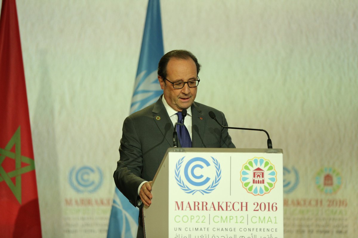 Zasadnutie OSN, ktoré sa týkalo klimatických zmien sa tento rok uskutočnilo v Marakéši v Maroku. Jeden z kľúčových rečníkov bol francúzsky prezident Holland, ktorý pred delegátmi ohlásil, že Francúzsko zavrie všetky svoje uhoľné elektrárne najneskôr do roku 2023. Taktiež si neodpustil pochváliť konanie Obamu a kritizoval Trumpa, čo sa publiku veľmi páčilo.