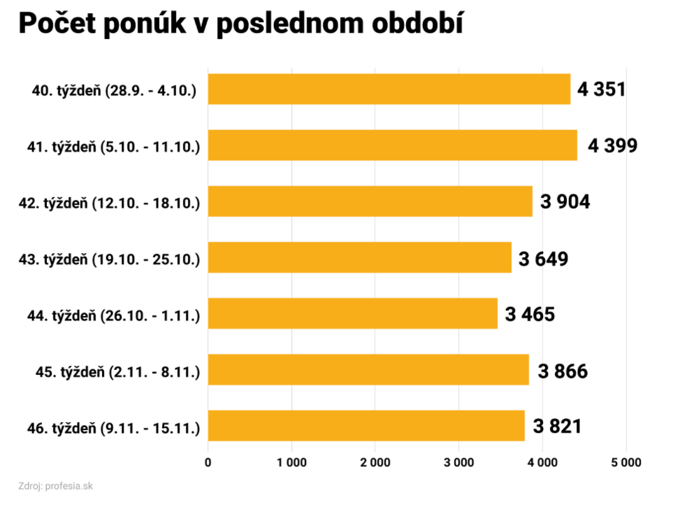 • Potvrdzuje to aj pokles pracovných ponúk v tomto odvetí. Záujemcovia o prácu si mohli vybrať októbri iba z 283 pracovných ponúk