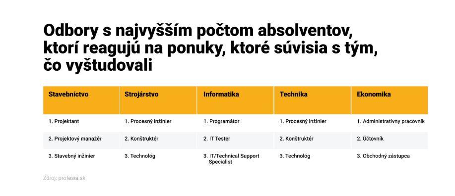 Podľa Profesie ide najmä o absolventov stavebníctva, strojárstva, informatiky, techniky a ekonomiky.