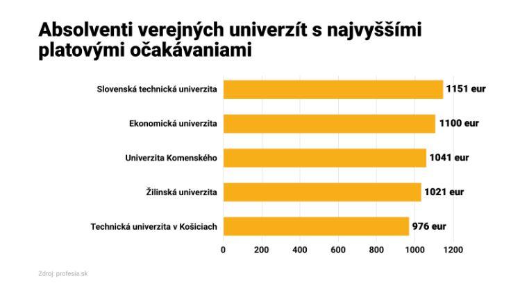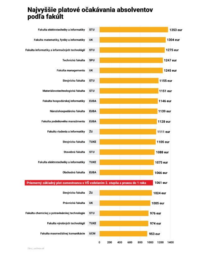 Podľa portálu Platy.sk bol vlani priemerný základný plat absolventa vysokej školy vo veku od 24 do 25 rokov 1 061 eur v hrubom. Pracovný portál Profesia.sk pritom zaznamenal vyššie mzdové očakávania rovno na 15 verejných fakultách.