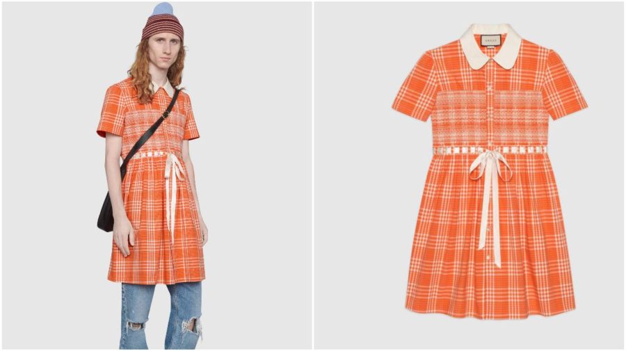 Gucii predáva šaty na svojej webovej stránke za 2 600 amerických dolárov, čo je v prepočte na eurá 2 216,54 eur.