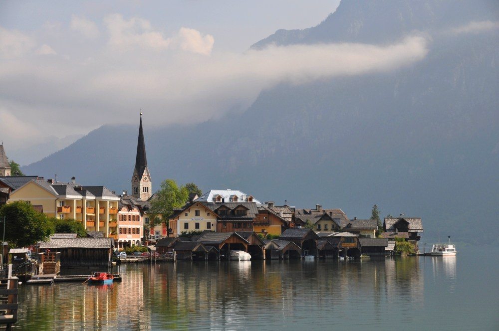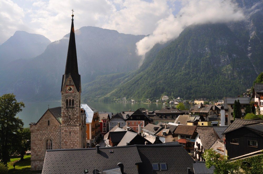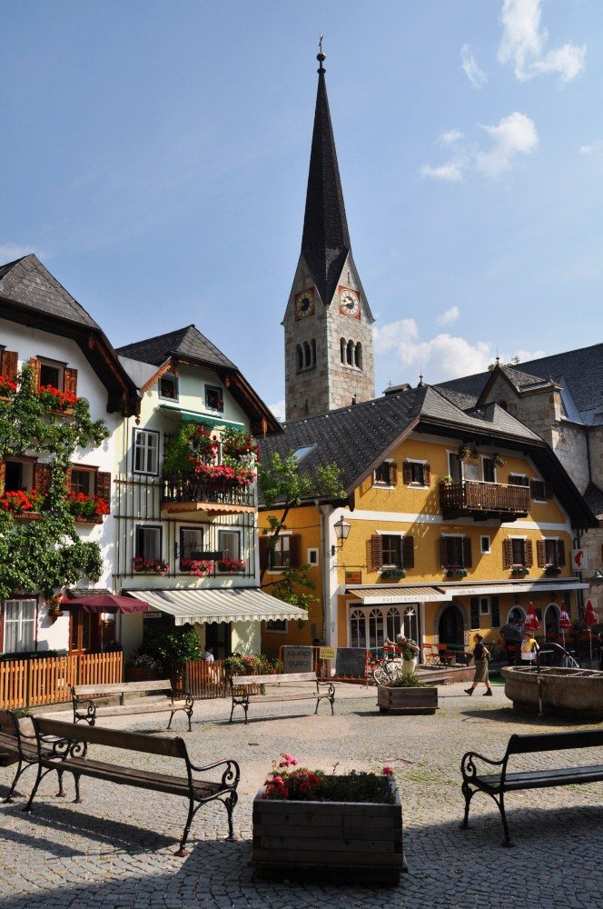 Panoráma Hallstattu je odtiaľto prekrásna. Nad jazerom sa dvíha špicatá zvonica evanjelického kostola Christuskirche a hneď vedľa hranatá zvonica kostola sv. Márie. Pod nimi sa rozlievajú ulice plné domov a scénu uzatvárajú zelené pahorky pokryté stromami. Hlavná ulica sa čoraz väčšmi zarezáva do srdca mesta, a tak sa naokolo vynárajú obchodíky, výklady, stoly s naukladaným tovarom, suvenírmi a samozrejme tu nechýbajú ani penzióny, hotely či reštaurácie. Malebnosť nie je cítiť len pri pohľade z diaľky, ale dýcha tu snáď na každom kroku. Do ulíc vytŕčajú balkóny s rozkvitnutými kvetmi, fasády domov zdobia drevené trámy a sem tam sa po dome tiahne brečtan. Zobudiť sa v takomto domčeku, odhrnúť záves a vypiť si svoj ranný čaj na balkóne s výhľadom na kopce zastreté hmlou nad Hallstattským jazerom je niečo, čo si človek vie veľmi dobre predstaviť.