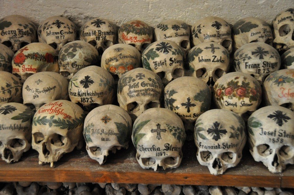 Zobraziť celú galériu (12)Neďaleko prístavu s drevenými loďami ponúkajúcimi exkurzie po Hallstattskom jazere sa z ulice dvíhajú nenápadné schody strácajúce sa za rohom. Na ich konci sa objaví niekoľko starých aj nových náhrobkov ležiacich v tieni majestátneho kostola Panny Márie. Stál tu už v 12.storočí, no barokovú pečať získal až neskôr. Preslávila ho nielen mohutná hranatá zvonica či poloha na kopci nad mestom, ale aj neskorogotický oltár zo 16.storočia. Ani ten však neláka návštevníkov tak, ako slávna kostnica. Temný turizmus, ako sa návštevy podobných miest označujú, si našiel miesto aj v Hallstatte a za nenápadným vchodom človek vstúpi do miestnosti plnej starých lebiek. Sú tu desiatky ľudí, no aj napriek tomu je tu ticho, ktorým žijú podobné miesta. Hallstatt ešte aj tu drží originalitu v tom, že na lebky namaľovali obrázky, kvetinky či mená rodín a dátumy.