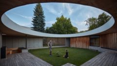 Zvolené riešenia, ako zdvojený sklenený strop, rôzne akustické predsteny a omietky, sú integrované do celkovej koncepcie interiéru.