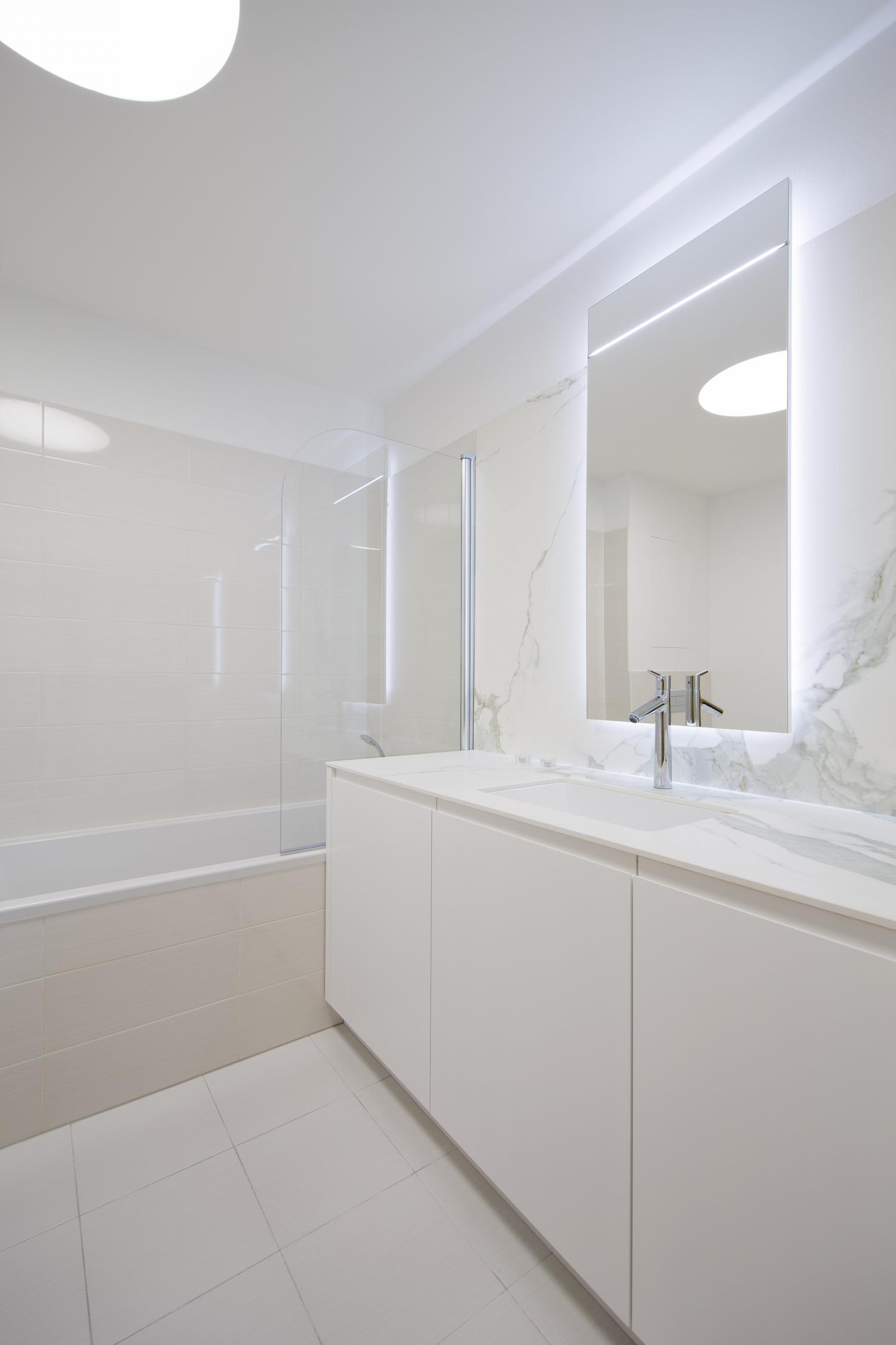 Kúpeľňa bola v byte nová v rámci štandardu, ktorú architekti nechali v pôvodnom stave a cyhili sa len detailom, ktorým dali nádych luxusu.