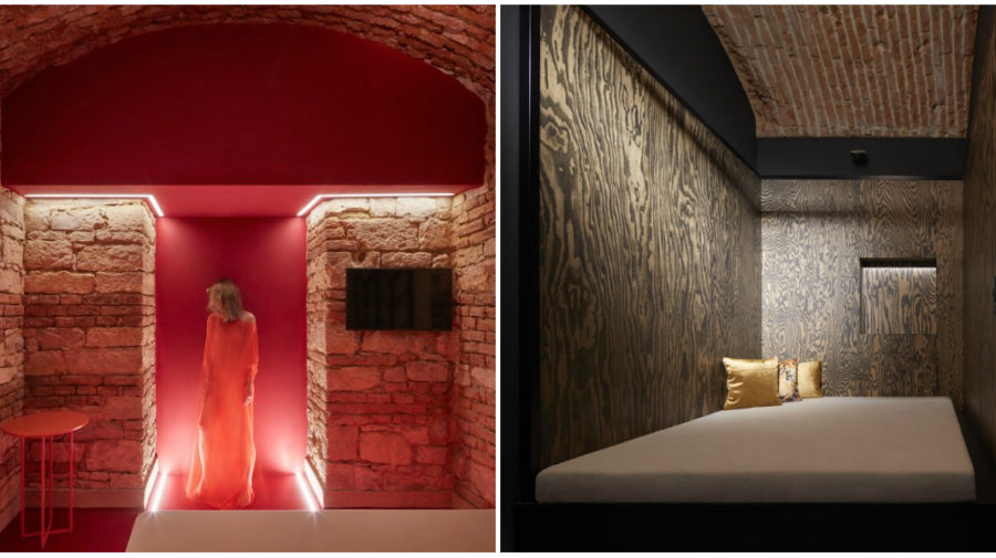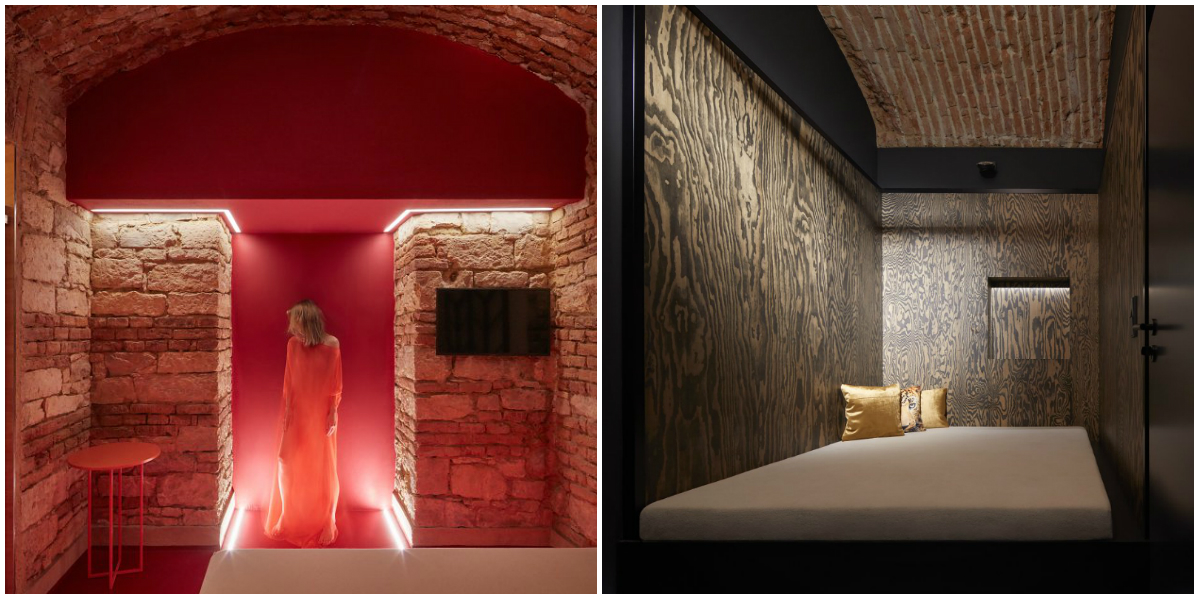 Lenka Míková: Osobne ma najviac baví tá červená izba a atmosféra hodinového hotela, ktorú tá farebnosť, osvetlenie a tehly vytvárajú. Jeden typ nasvietenia sme zvolili nepriamo odrazom od klenby, svetlo má potom mäkkú a príjemnú farbu i intenzitu a robí príjemnú náladu, že si tam ani neprídete ako v pivnici. Vo vstupnej časti sme sa snažili o efektné nasvietenie, čo by človeka svojím spôsobom odstrihlo od sveta vonku, hľadala sa určitá adekvátna miera temnoty .. a dôležitý bol tiež pomyselný príbeh – predstaviť si dej a vytvoriť si scenár, ako sa návštevník pohybuje a čo zažíva už od vstupu z ulice až k samotnej posteli .. :)