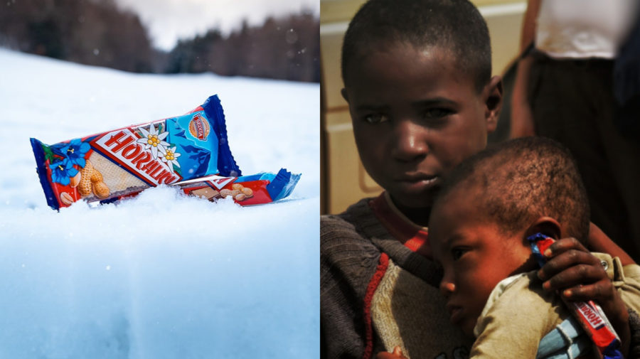 Horalky na sociálnej sieti vyhlásili pátranie po autorovi, ktorý zachytil túto jedinečnú fotografiu. Nachádzajú sa na nej dve africké deti, mladšie v náručí staršieho, pričom staršie drží v ruke legendárnu pochutinu.