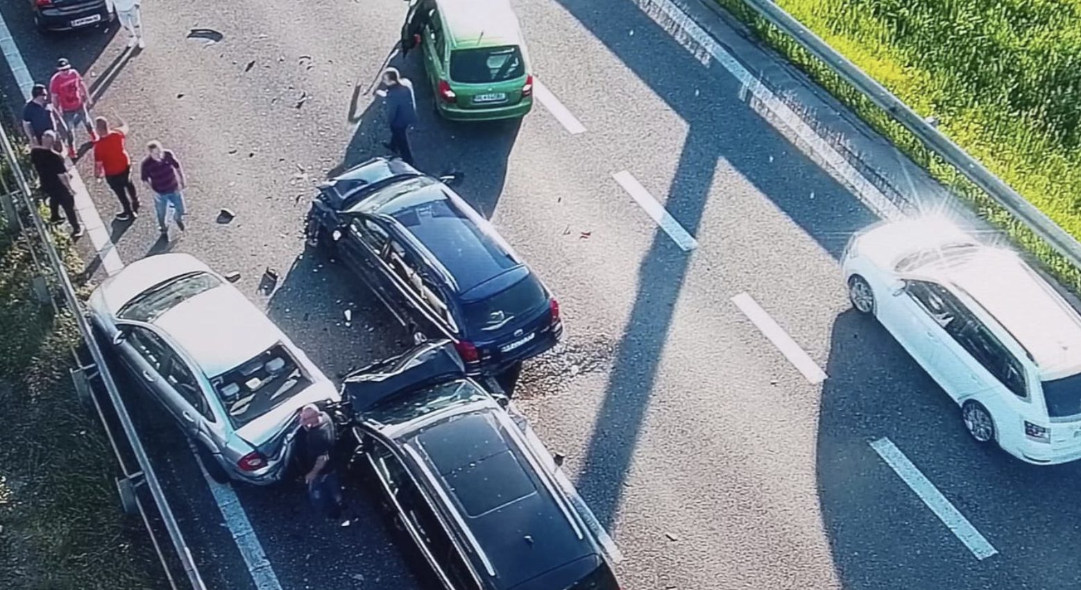 Na diaľnici D1 v smere do Bratislavy sa v nedeľu večer zrazilo šesť áut. V úseku je diaľnica prejazdná iba v pravom, odbočovacom jazdnom pruhu.