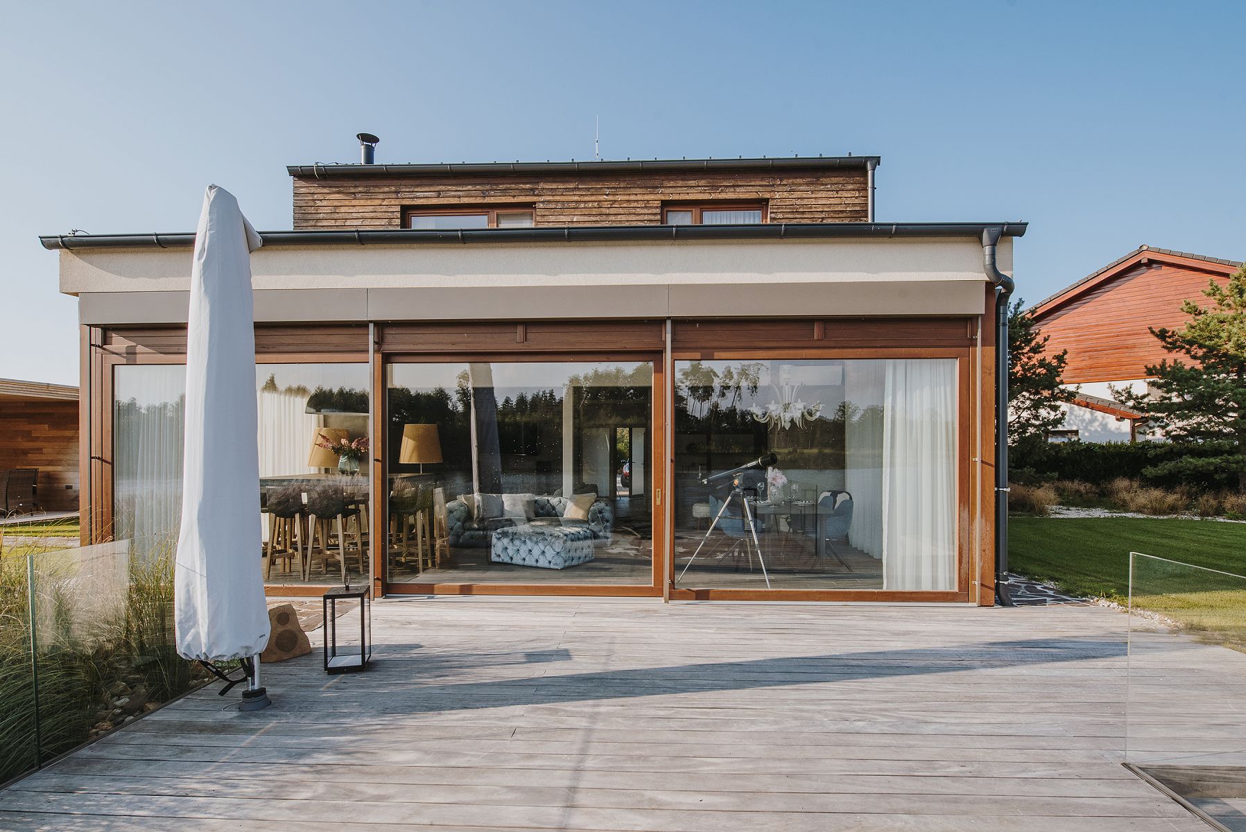 „Kompletné vybavenie zahŕňa drevené podlahy, drevené okná s trojitým zasklením, podlahové kúrenie v kúpeľniach a hliníkové vchodové dvere,“ uvádza sa na webe realitnej kancelárie.