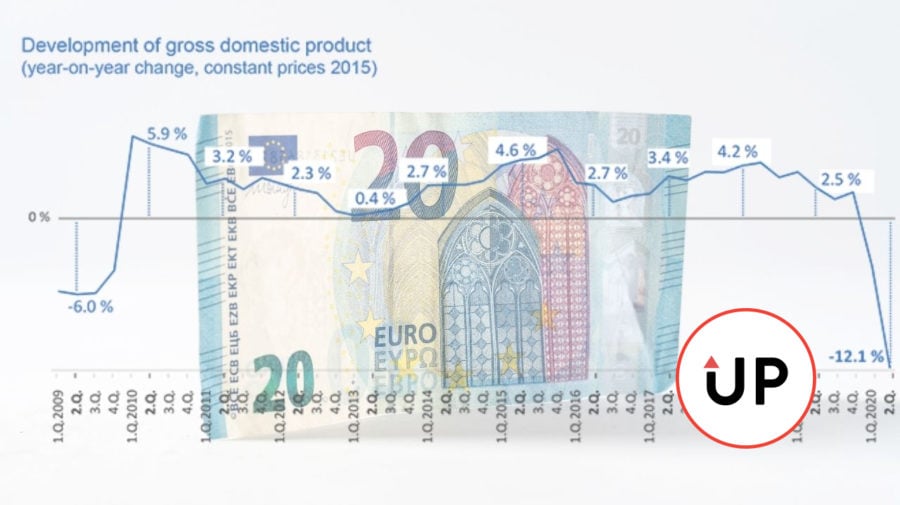 Z vyprodukovaného hrubého domáceho produktu tvorila pridaná hodnota v 2. štvrťroku 2020 objem 18 953,6 mil. eur v bežných cenách a medziročne reálne klesla o 12,2 %. Niektoré sektory ekonomiky zaznamenali prepad o viac, ako 20%. Patrí sem priemysel (25,4 %), umenie, zábava a rekreácia (22,3 %). Dvojciferným poklesom utrpelo aj stavebníctvo (18,1 %), obchod; doprava a skladovanie; ubytovacie a stravovacie služby (15,7 %). Informačné a komunikačných činnostiach poklesli o 14,8 %.
