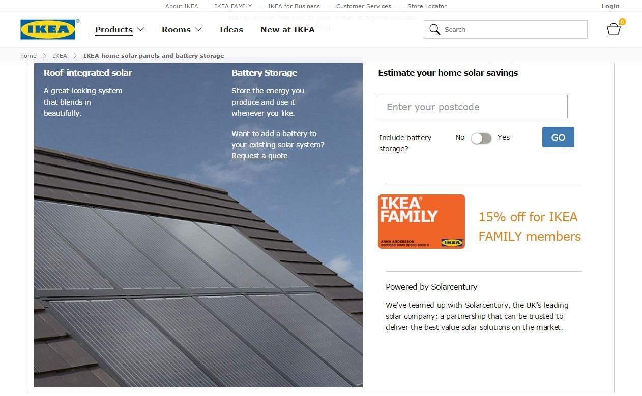 IKEA odteraz svojim zákazníkom v Spojenom kráľovstve ponúka solárne panely a batérie. Škandinávsky nábytkový reťazec spolupracuje so spoločnosťou Solarcentury na predaji solárnych panelov, pričom solárne batérie začínajú s cenou 3 300 €.