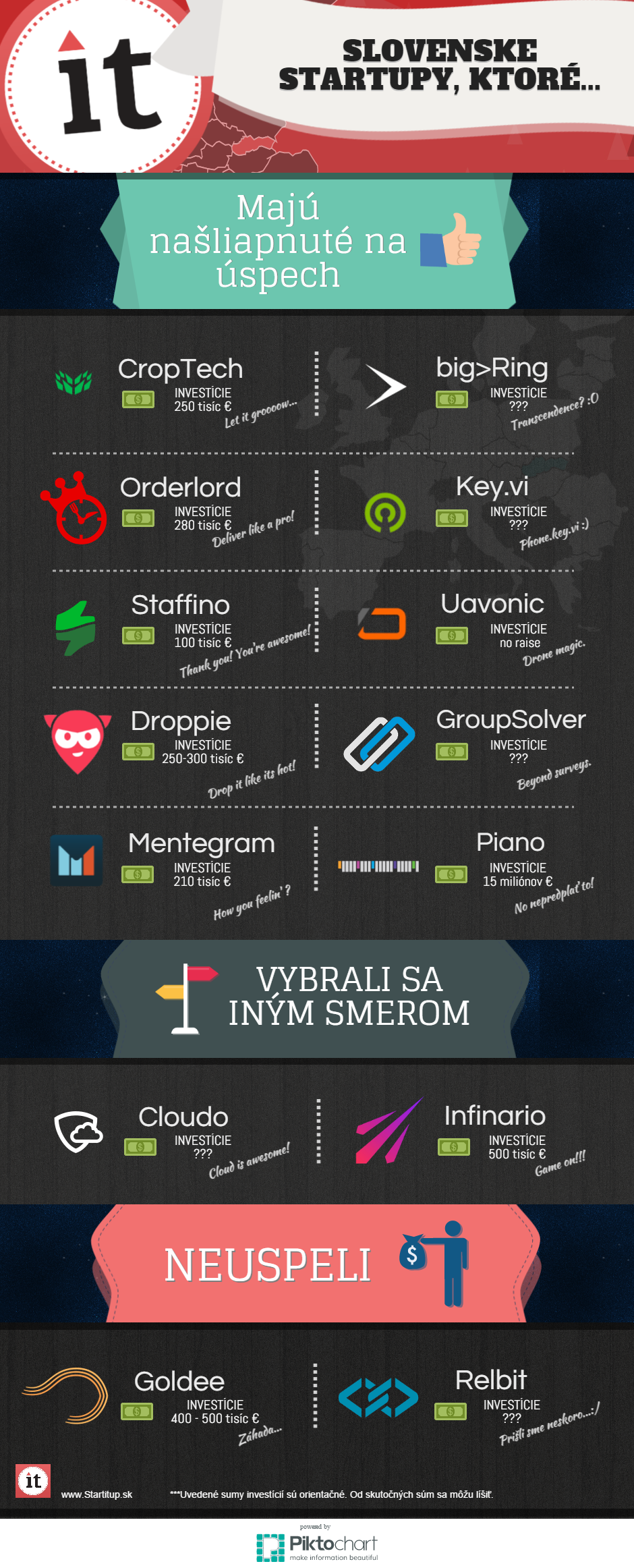 - Startup sem, startup tam, všade samý startup... Máš prehľad o tom, ako sa vlastne darí startupom na Slovensku? My sme sa na to pozreli a ty si môžeš pozrieť všetko pekne zhrnuté v jednej infografike. Kým niektoré startupy to nezvládli, tak iné majú namierené na vrchol.
