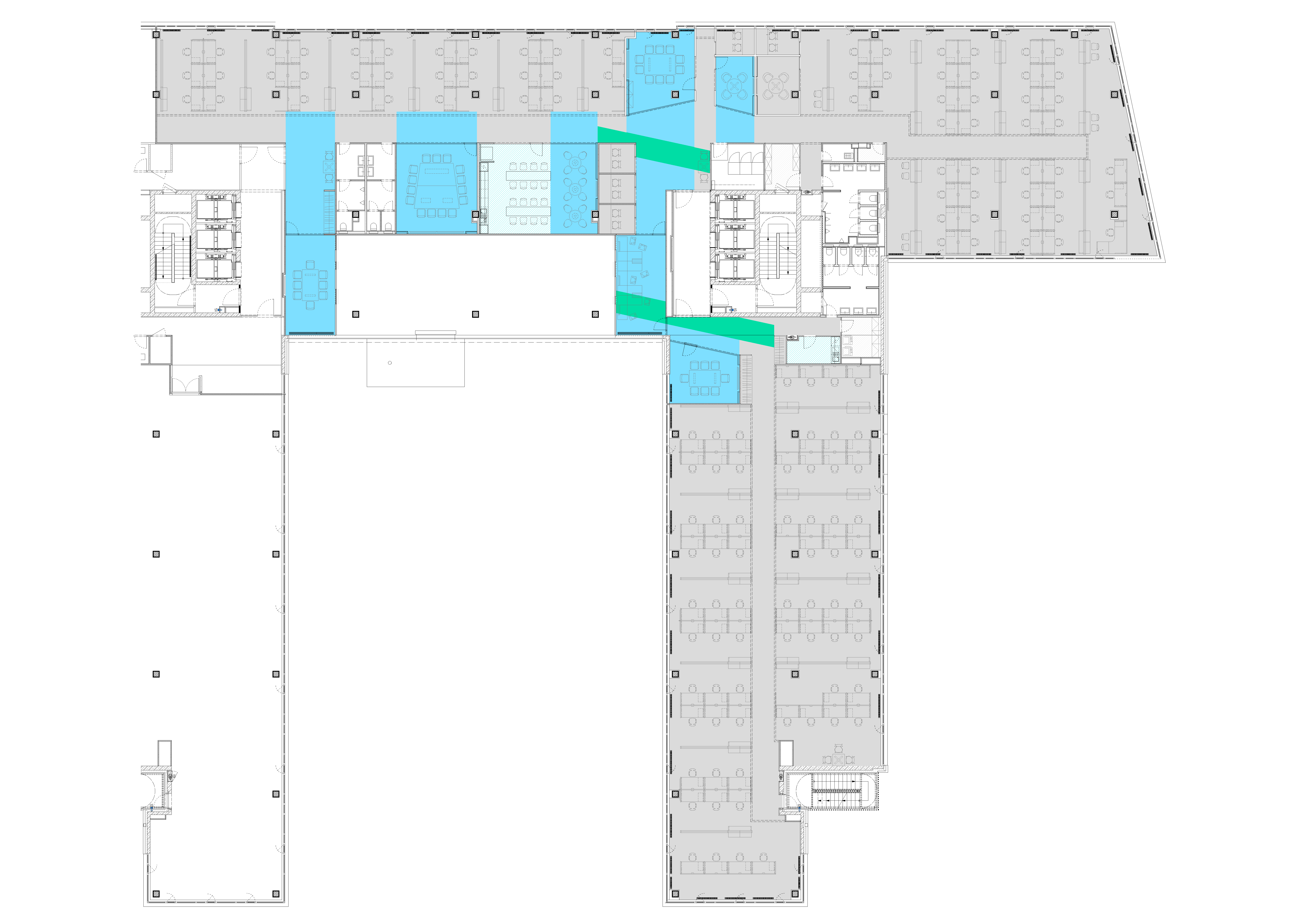 J.S: Prevádzka kancelárskych priestorov sa dosť líši podľa zamerania spoločnosti. Mnohé stereotypy sa postupne menia s príchodom nových technológií a spôsob fungovania firmy sa vyvíja. Samozrejme architekt má možnosť v určitej miere zasiahnuť do prevádzky, najmä v priestoroch , ktoré nie sú natoľko ovplyvnené technológiami.