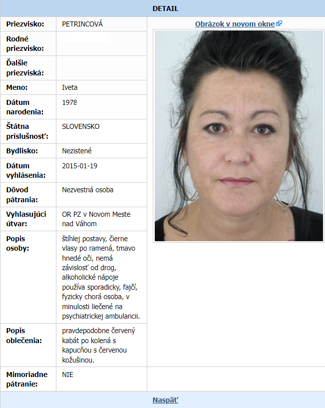 - Iveta Petrincová (44) nevysvetliteľne zmizla ešte v januári 2015