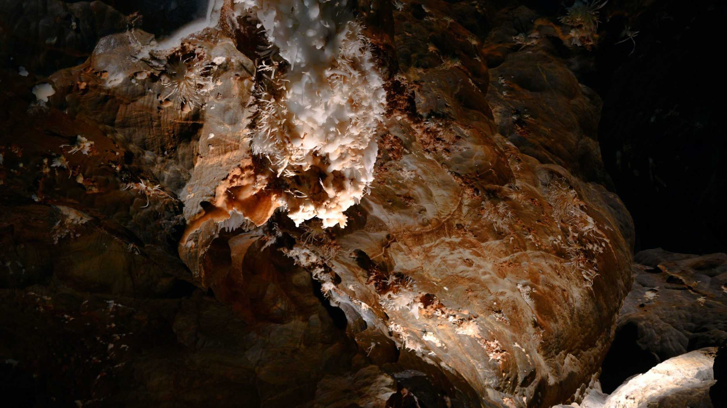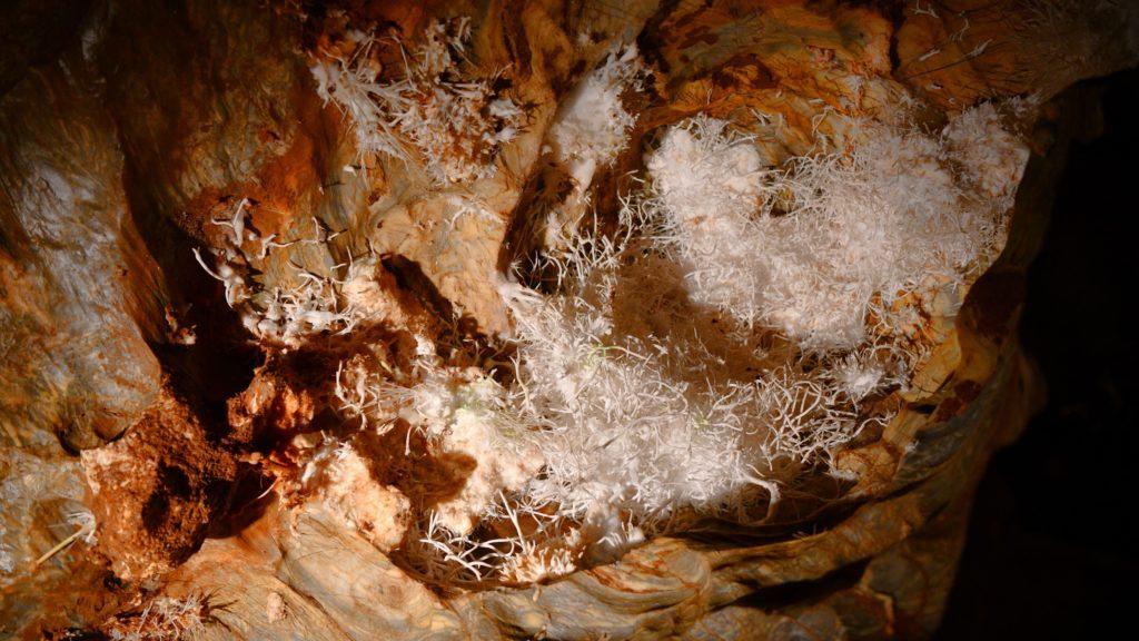 Za očarujúce aragonitové konštrukty to však stojí. Biele trblietavé ihlice pôsobia ako kúsky snehových vločiek a častokrát vytvárajú až vesmírne štruktúry. Najstaršie kúsky aragonitu dosahujú vek až 138-tisíc rokov.