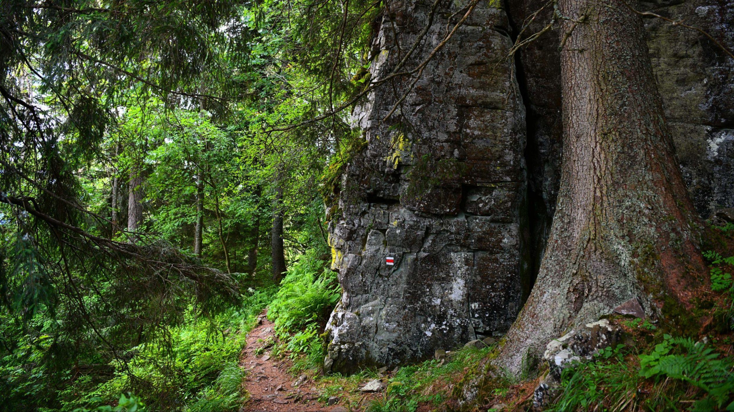 Na konci výstupu sa týči 40-metrov vysoké skalné bralo s impozantným výhľadom na Nízke Tatry a skalnými pralesmi. A k tomu geografický bod a knižka, kam sa zapisuje každý turista.