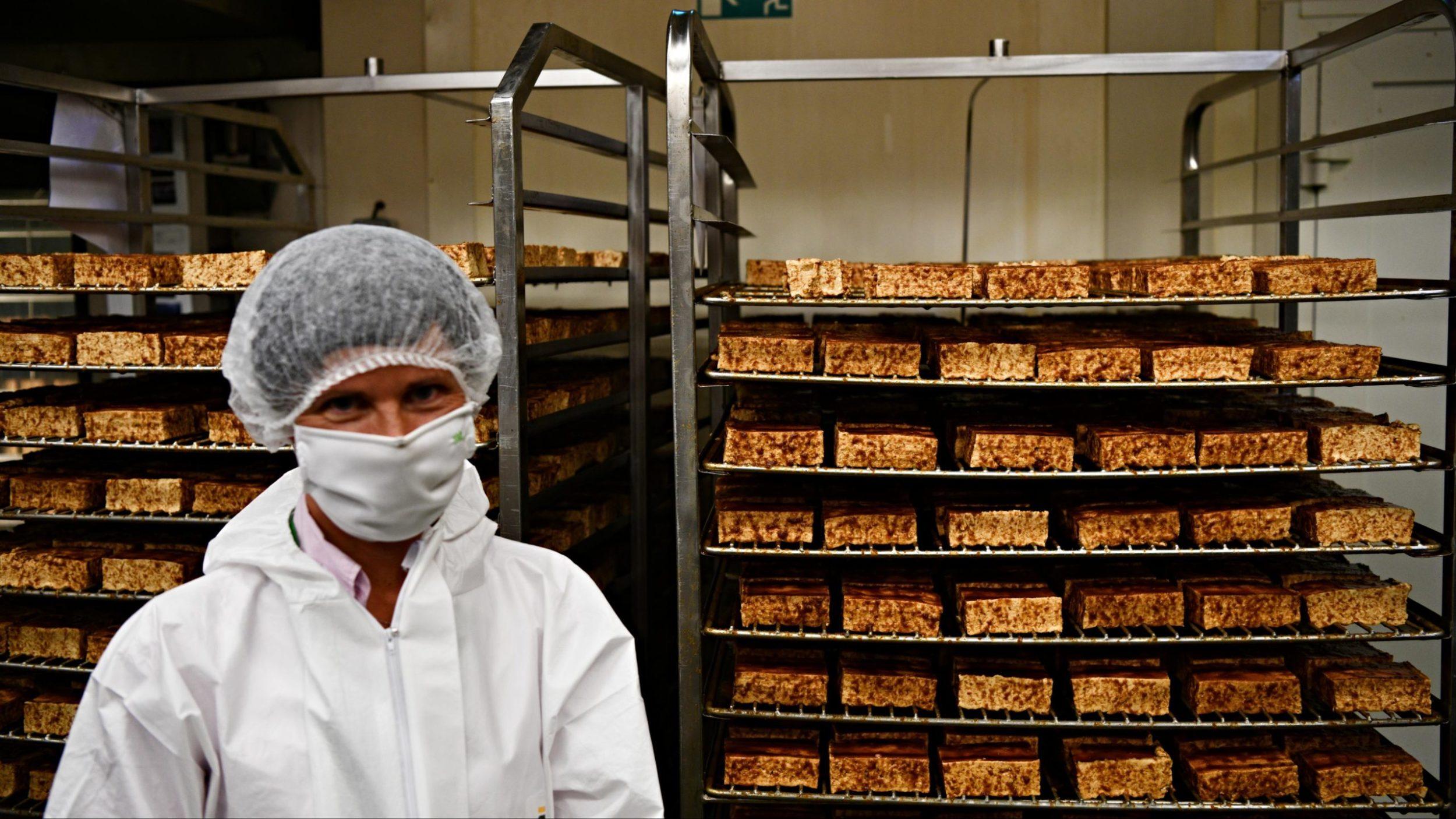 Všetko za veľmi prísnych hygienických štandardov – ani poctivá výroba sa predsa nezaobíde bez povinností. Ochranné obleky, rúška a čiapky sú samozrejmosťou, Lunter tofu a nátierky v supermarketoch predsa musia byť na 110 percent.