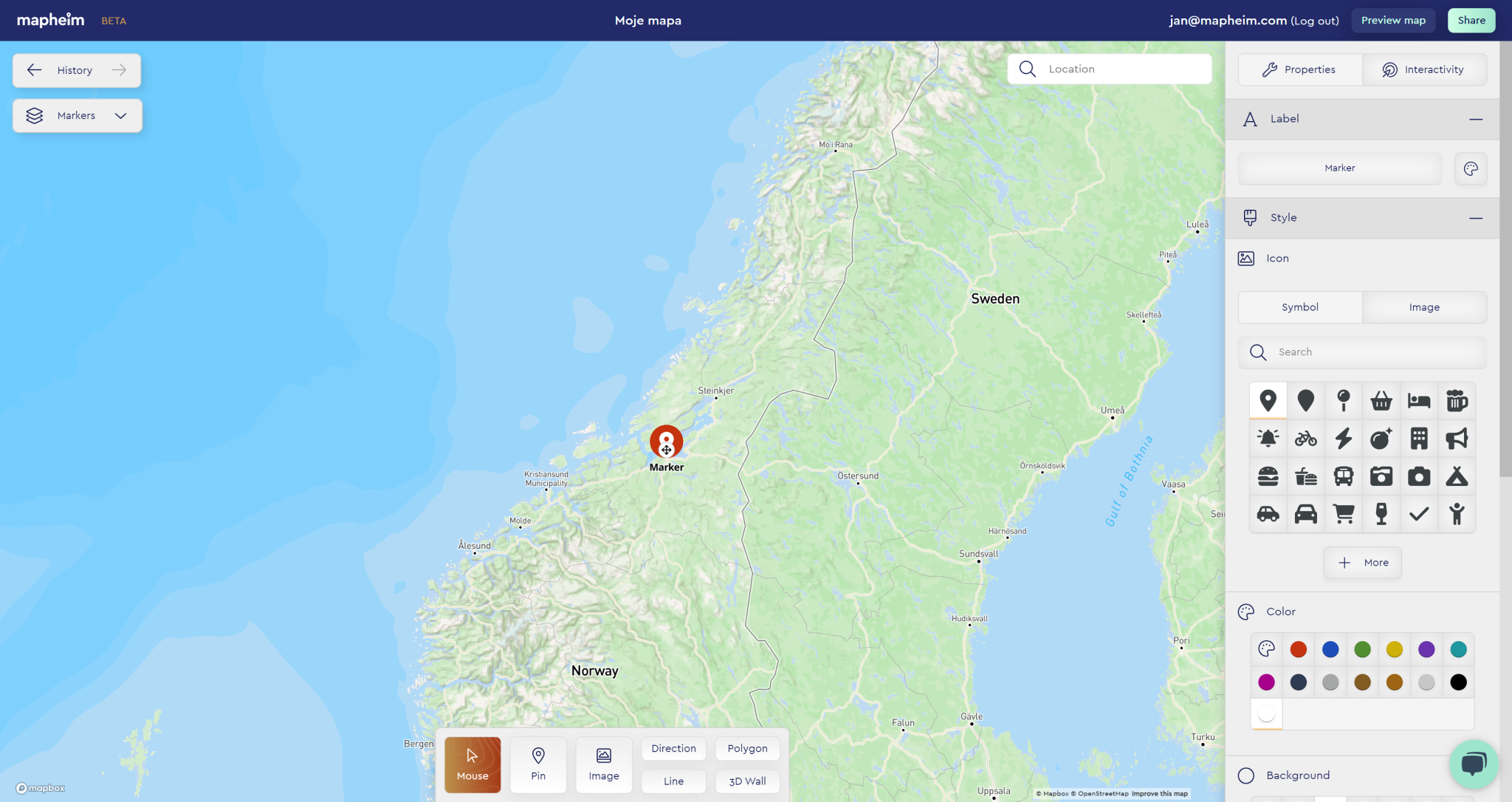 Problém ale je, že takéto riešenie je veľmi drahé vyvinúť a všetky zmeny musíte opakovane konzultovať s vývojármi. V Mapheime na to ideme inak. Na našej platforme app.mapheim.com si ktokoľvek môže vytvoriť interaktívnu digitálnu mapu, či už geografickú alebo obrázkovú.