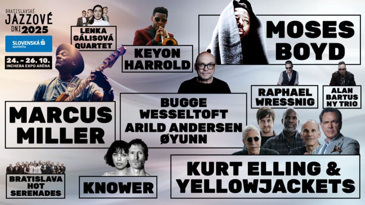 Tohtoročné Bratislavské jazzové dni Slovenská sporiteľňa 2025 prinesú do Bratislavy to najlepšie zo svetového aj európskeho jazzu. Hlavnými hviezdami festivalu budú legendárny basgitarista Marcus Miller, ktorý predstaví svoj energický funk-jazzový projekt, a spevák Kurt Elling so skupinou Yellowjackets v jedinečnom programe Celebrate Weather Report, vzdávajúcom poctu ikonickej ére moderného jazzu. O explóziu zvuku, rytmu a humoru sa postará americké duo Knower, známe svojou nepredvídateľnou a výbušnou koncertnou show, ktoré v Bratislave vystúpi v 6-člennej koncertnej zostave. Nórska zostava Bugge Wesseltoft / Arild Andersen / Øyunn prinesie do Bratislavy severskú poetiku a prepojenie akustického jazzu s elektronikou, zatiaľ čo americký trubkár Keyon Harrold očarí emotívnou fúziou jazzu, soulu a hip-hopu. Moderný britský groove a elektronický puls súčasného Londýna potom prinesie Moses Boyd, jeden z najvýraznejších predstaviteľov novej generácie jazzmanov.