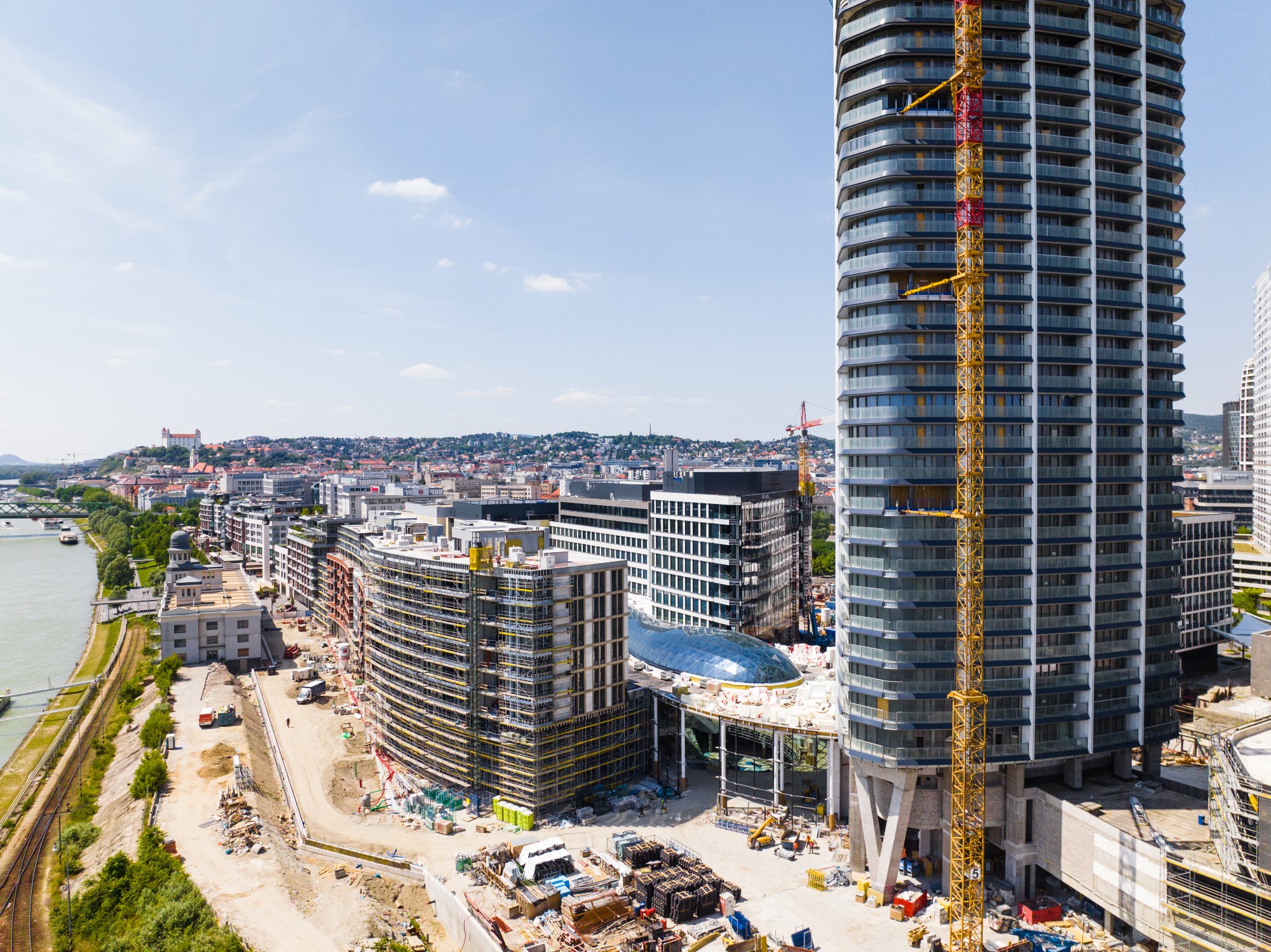 Budova bude ešte ďalej rásť, už dnes však výrazne rezonuje v panoráme Bratislavy.