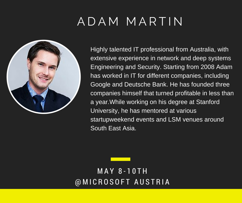 Adam je pôvodom Austrálčan, pred niekoľkými mesiacmi úspešne exitol svoj SaaS security startup a momentálne pracuje na ďalšom projekte DealIndex. Tu spolu s jeho tímom poskytujú službu investorom tým, že pre nich normalizujú a sumarizujú informácie o startupoch z rôznych informačných platforiem a rôznych kútov sveta.
