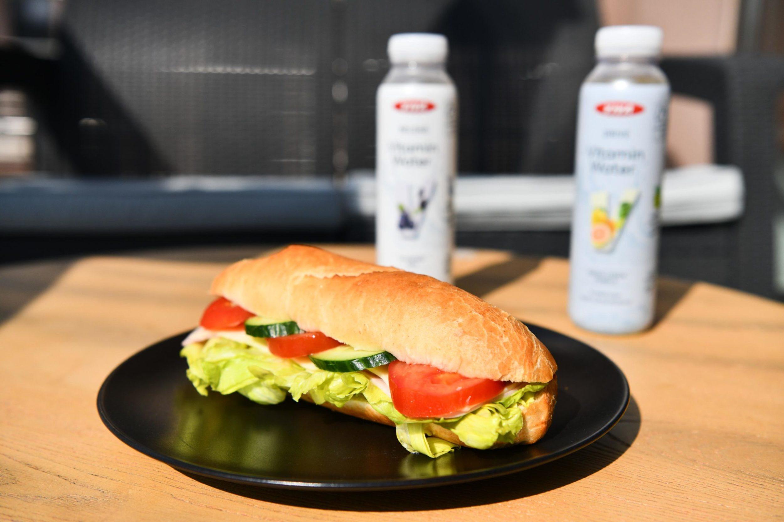 K čerpačkám však neodmysliteľne patrí aj balené jedlo, ktoré sa hodí do jednej ruky za volant. Sendviče, snacky a najmä bagety.