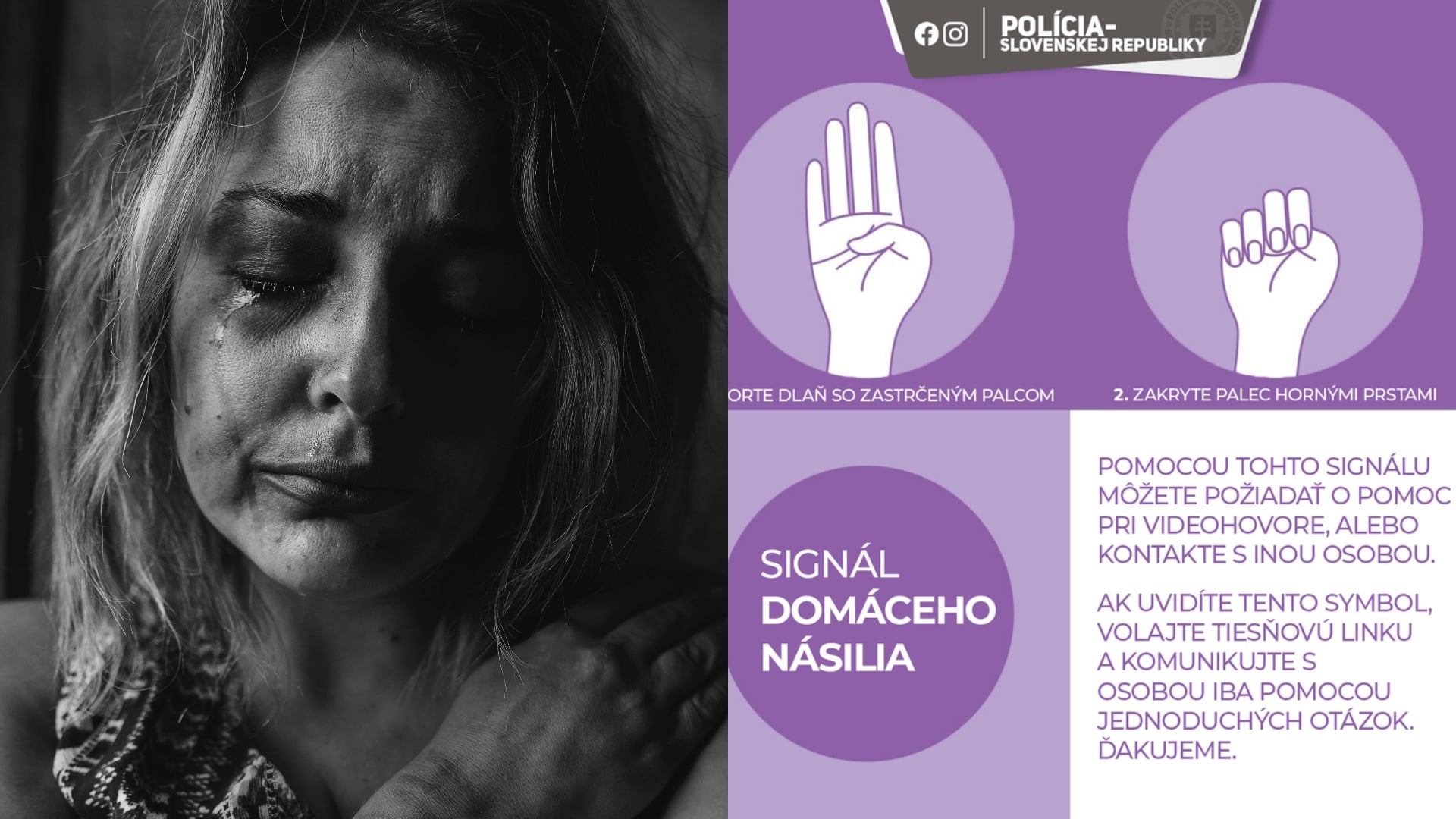 „Medzinárodné gesto #signalforhelp znamená žiadosť o pomoc v ťažkej situácii domáceho násilia. Obeť ho môže ľahko použiť napríklad pri videohovore bez toho, aby zanechala digitálnu stopu, alebo pri kontakte s inou osobou. Stačí zdvihnúť ruku, schovať palec do dlane a potom okolo neho ohnúť ostatné prsty,“ vysvetľuje polícia v príspevku na sociálnej sieti Facebook.