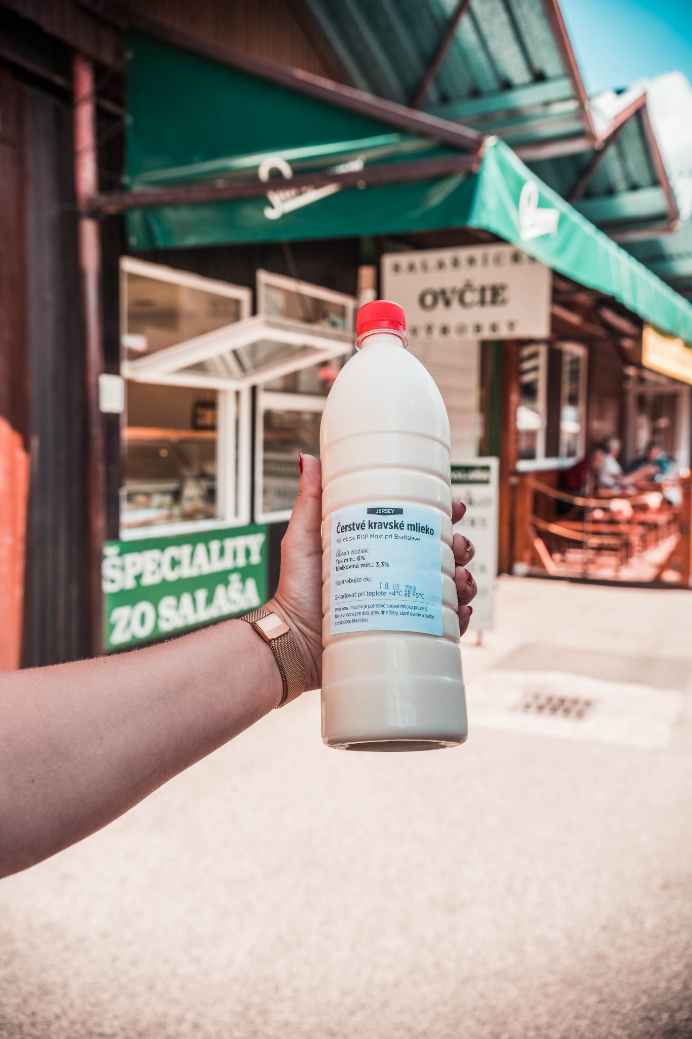 Pristupujeme k stánku s mliečnymi výrobkami. Mladý muž nám núka 6 % mlieko s dokonalou chuťou, no v plaste a bez bločka, cena 1,50 € za liter. V drevenom stánku kupujeme lokálny kváskový chlieb za 1,70 €.