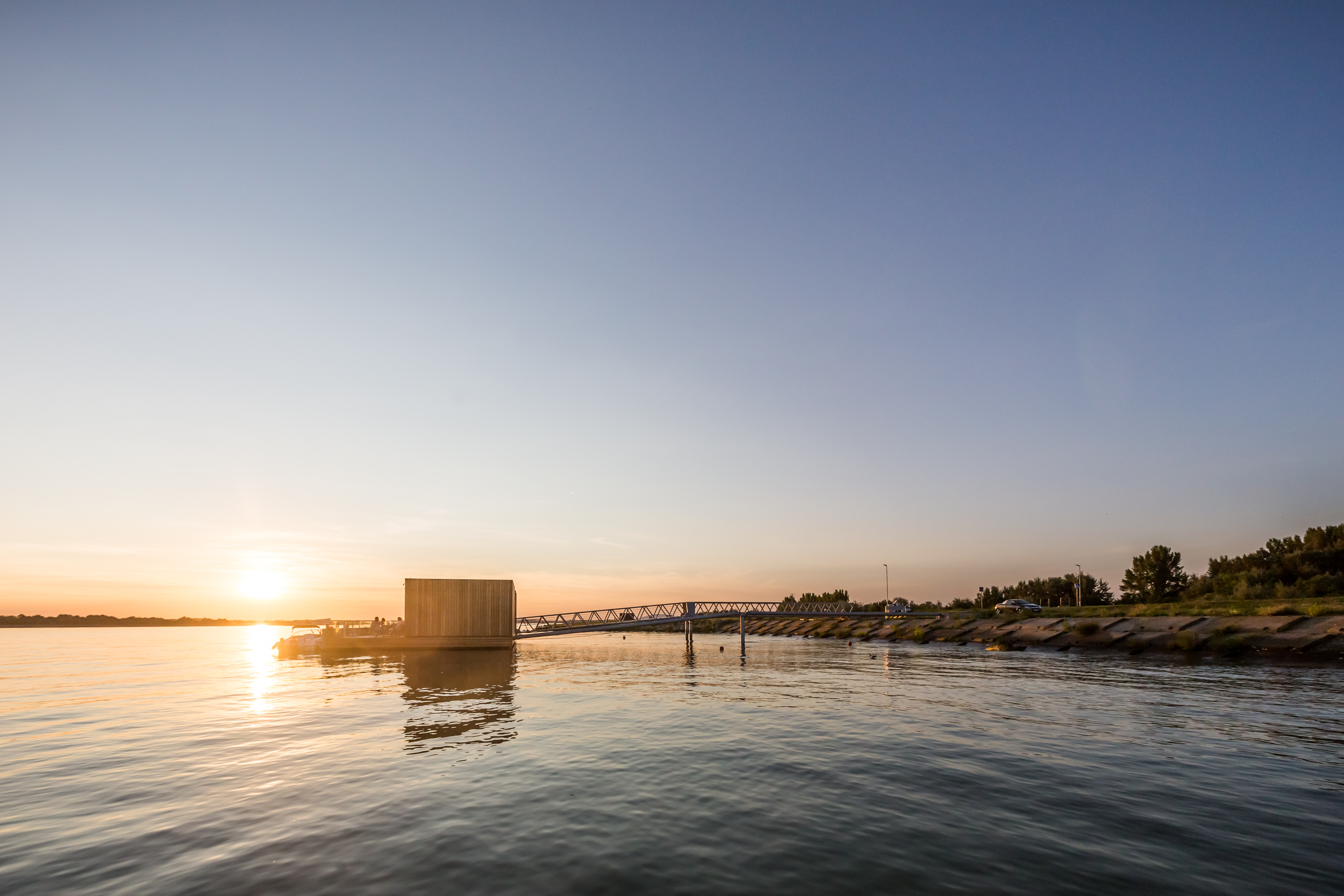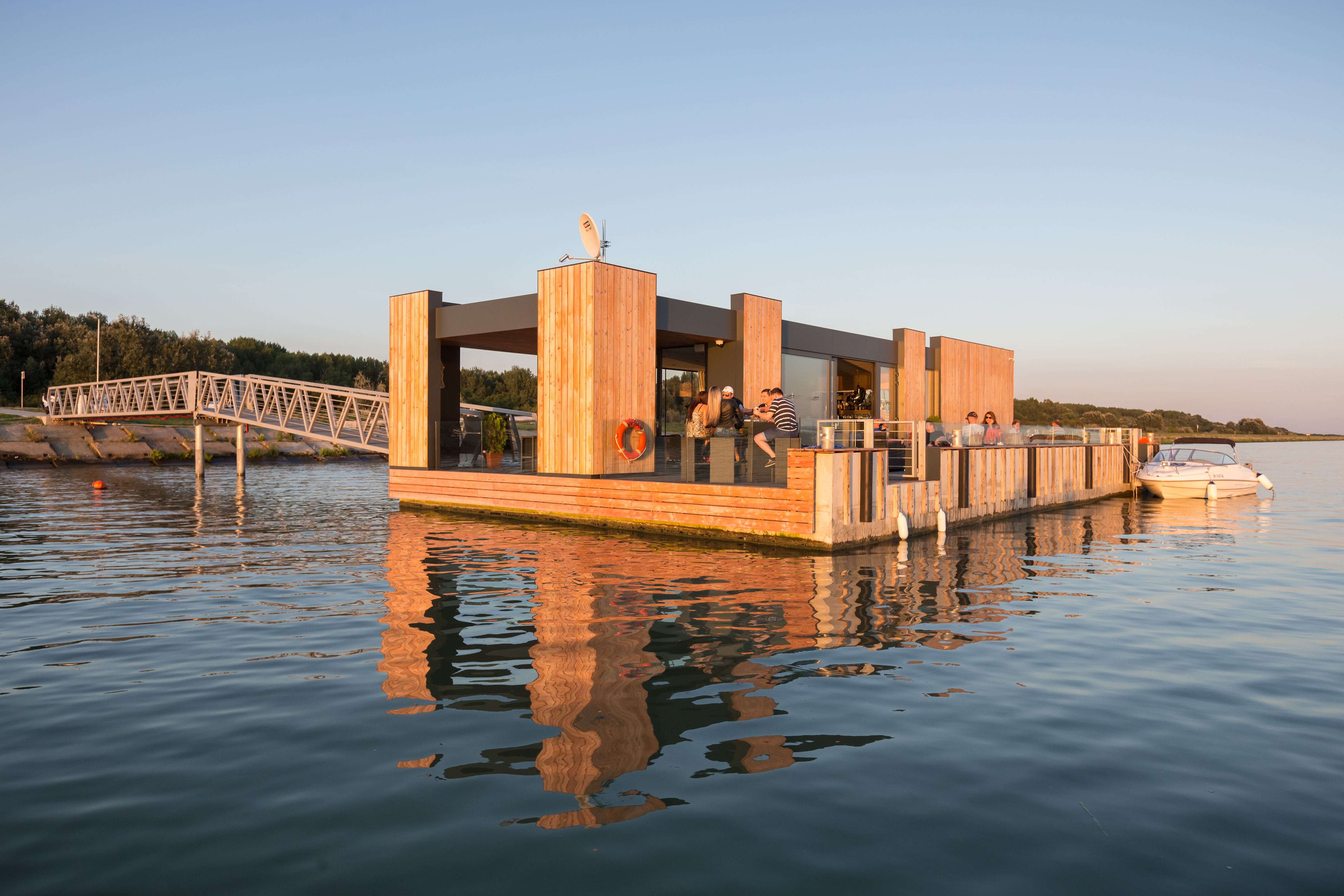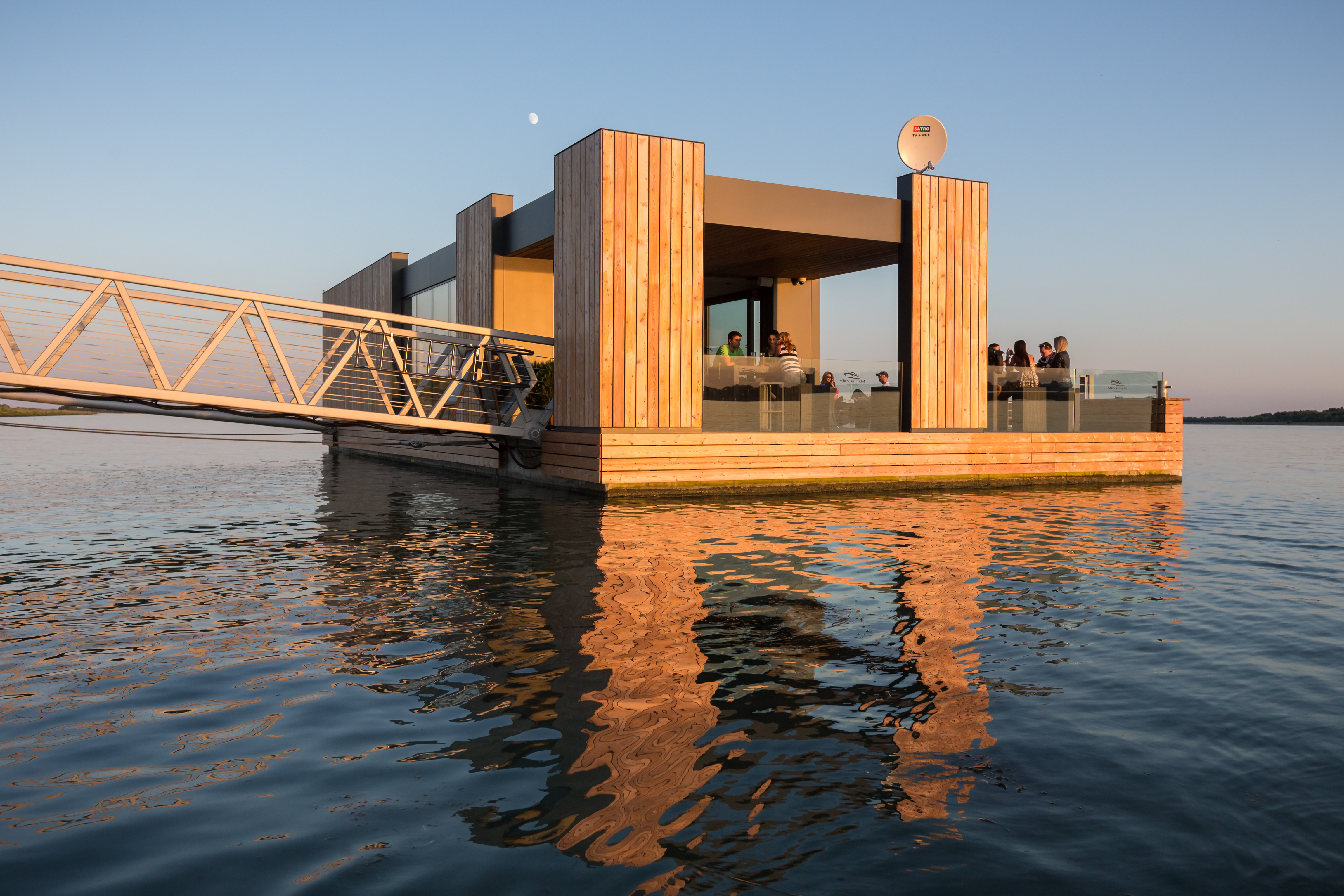 Pristávacie mólo s kaviarňou vzniklo za účelom spojiť obec Hamuliakovo lodnou dopravou s mestom Bratislava. Kaviareň zároveň slúži ako čakáreň pre cestujúcich a predajné miesto lístkov na lodnú dopravu. Objekt kaviarne je umiestnený na plávajúcom železobetónovom pontóne, ktorý je k brehu vyviazaný pomocou sústavy vzpier, lávok a vyväzovacích lán.