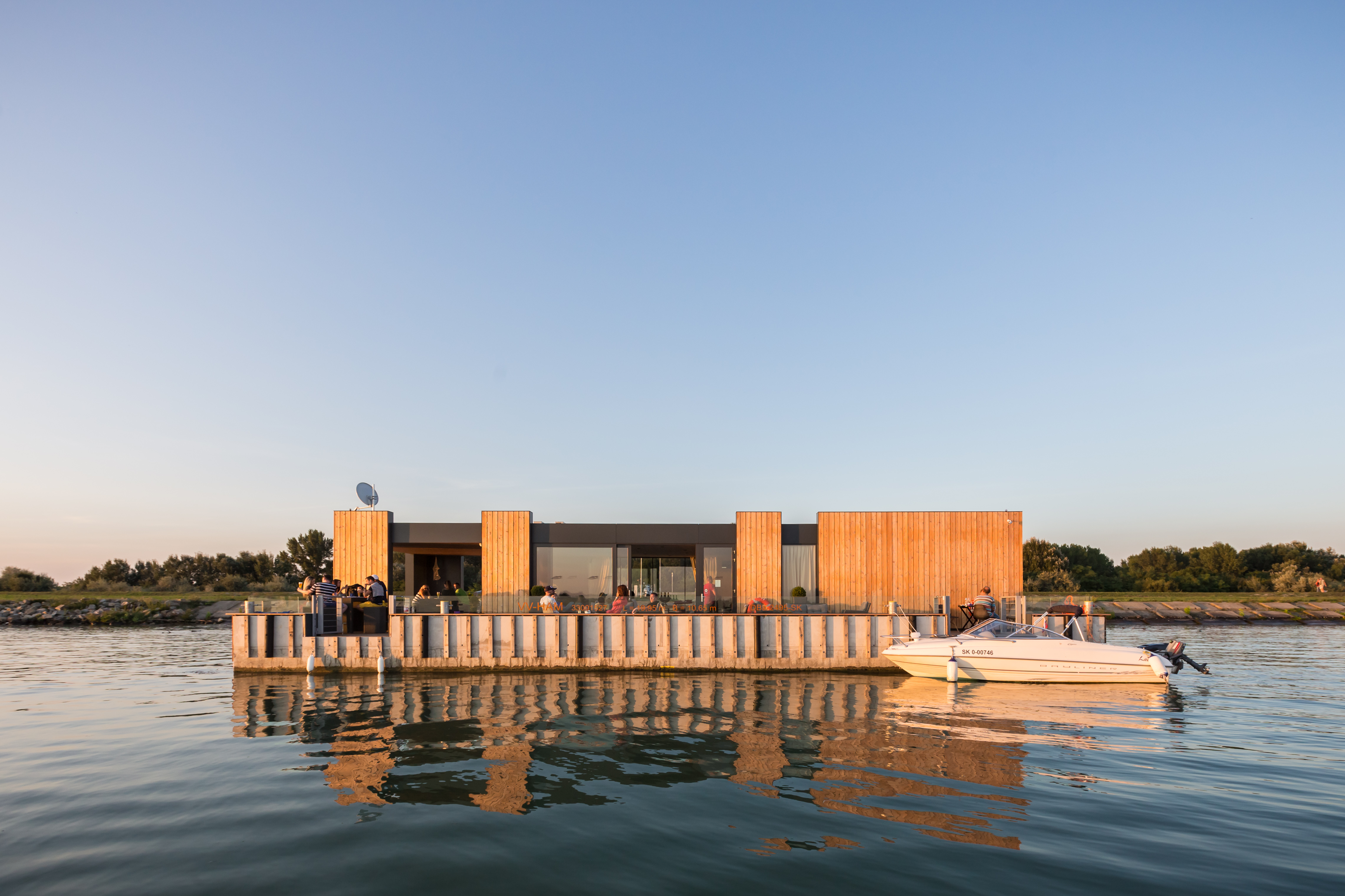 Trup plavidla je železobetónovej konštrukcie s polystyrénovým jadrom. Táto technológia zabezpečuje plavidlu vysokú pevnosť, stabilitu a životnosť bez potreby údržby. Vďaka jadru z EPS je trup nepotopiteľný. Súčasťou pontónu je aj žiarovo zinkovaná nádoba, do ktorej je vložená čistiareň odpadových vôd. Objekt kaviarne je riešený ako drevostavba s odvetranou fasádou a výrazným presklením.