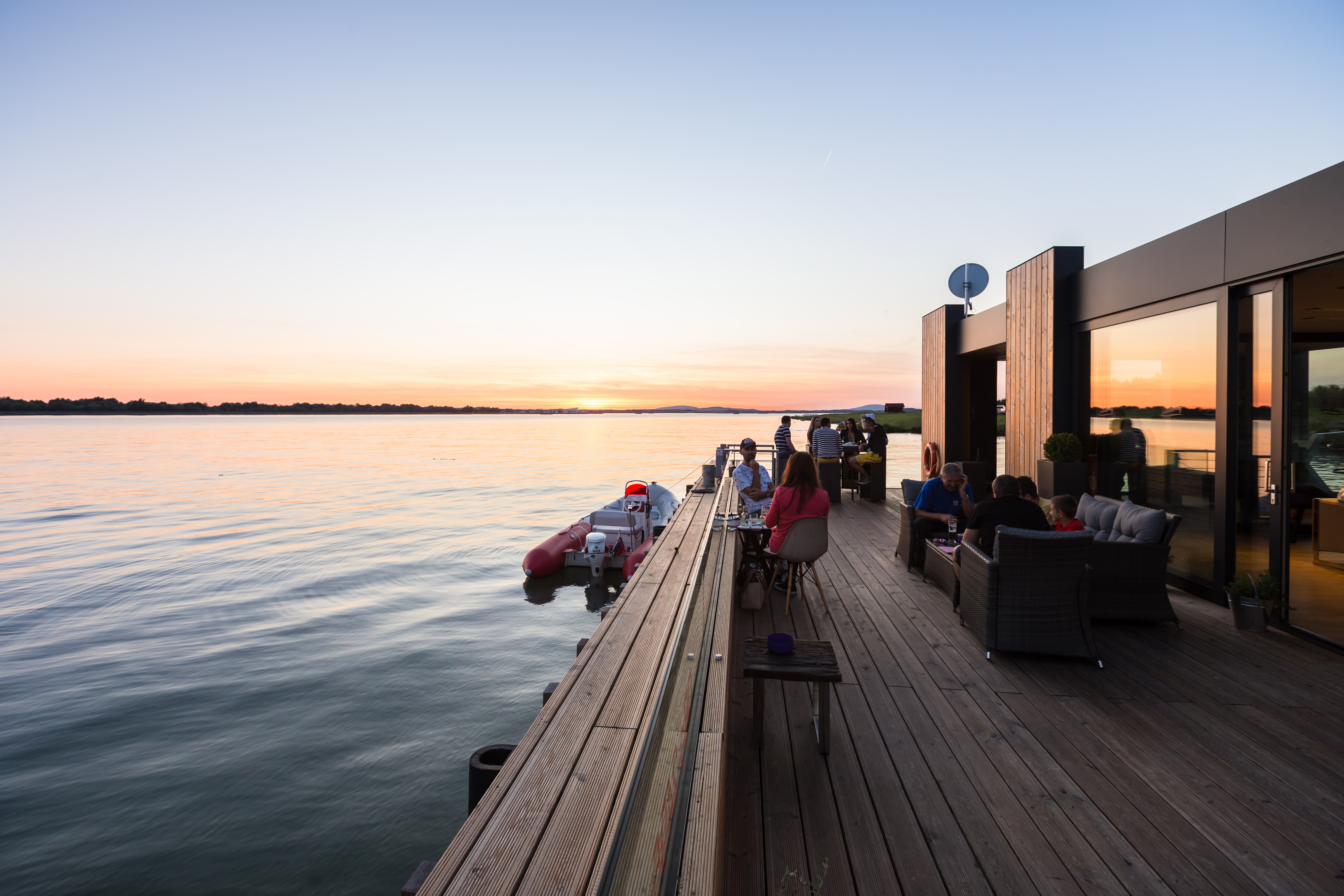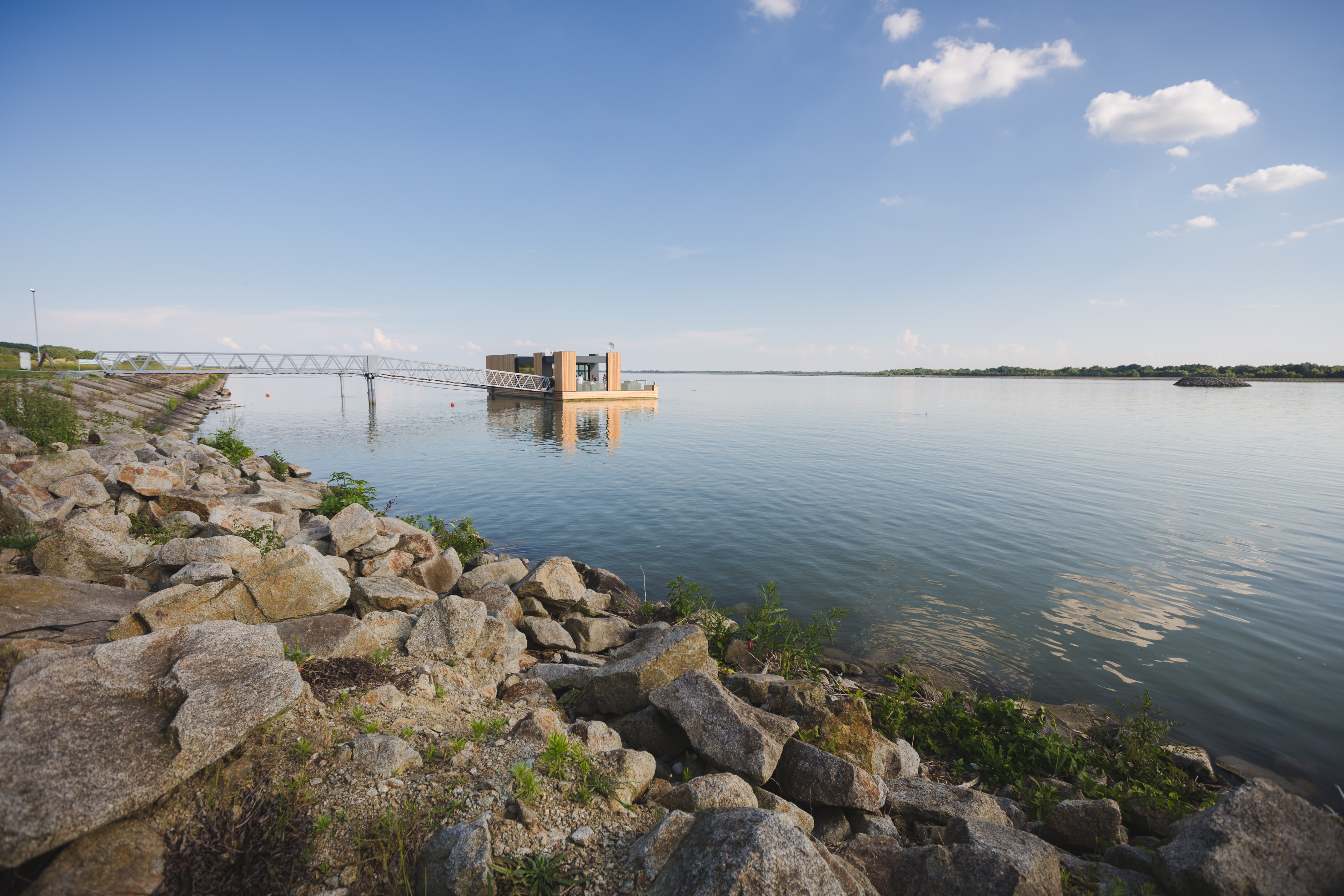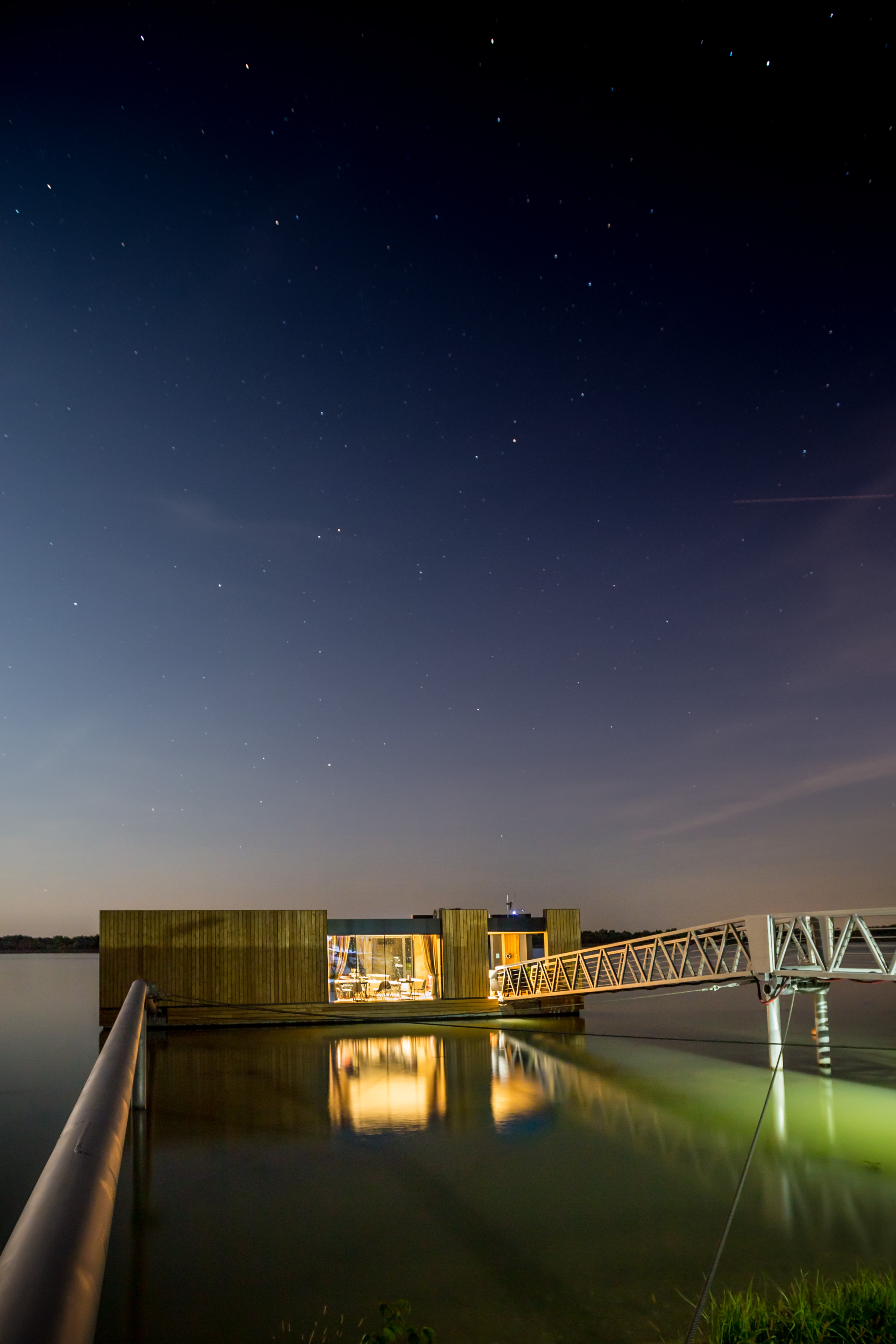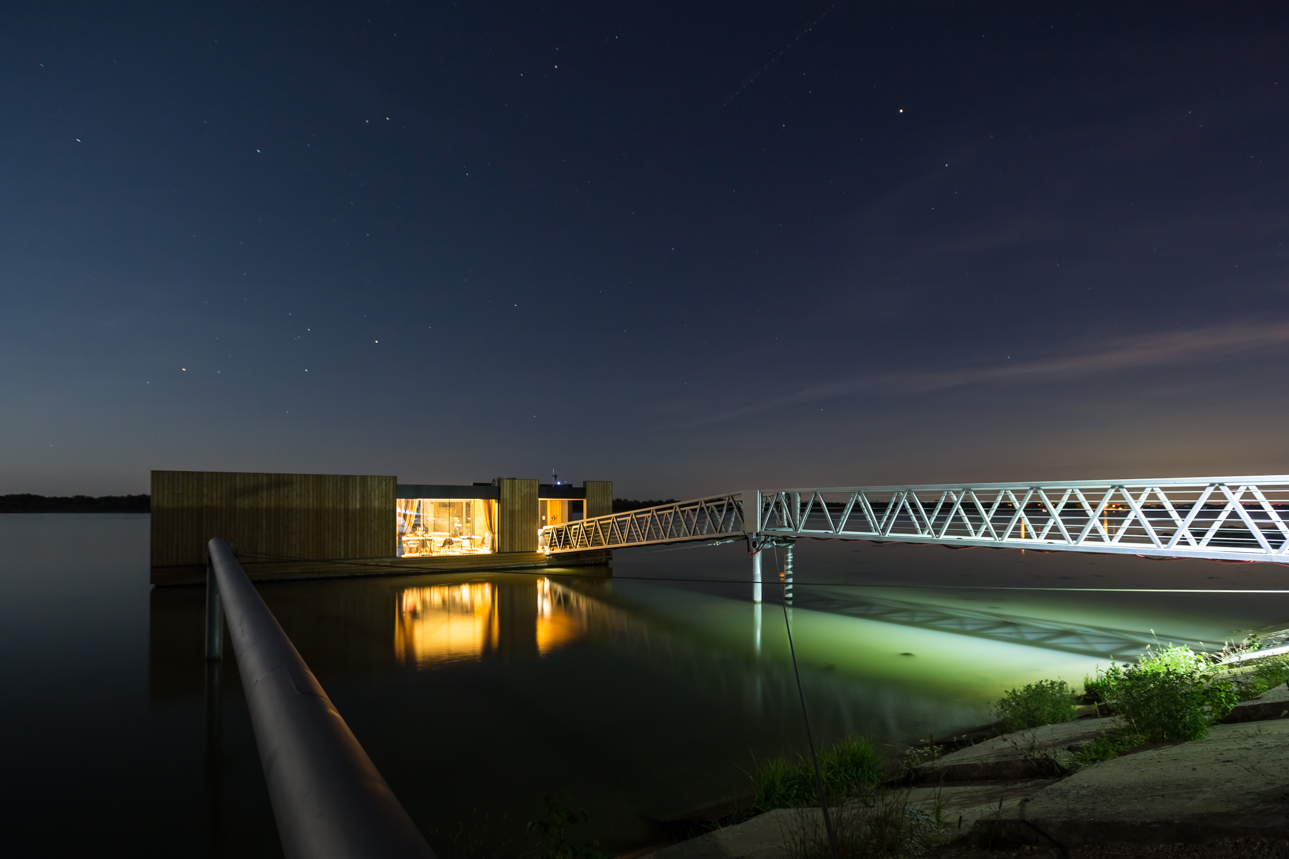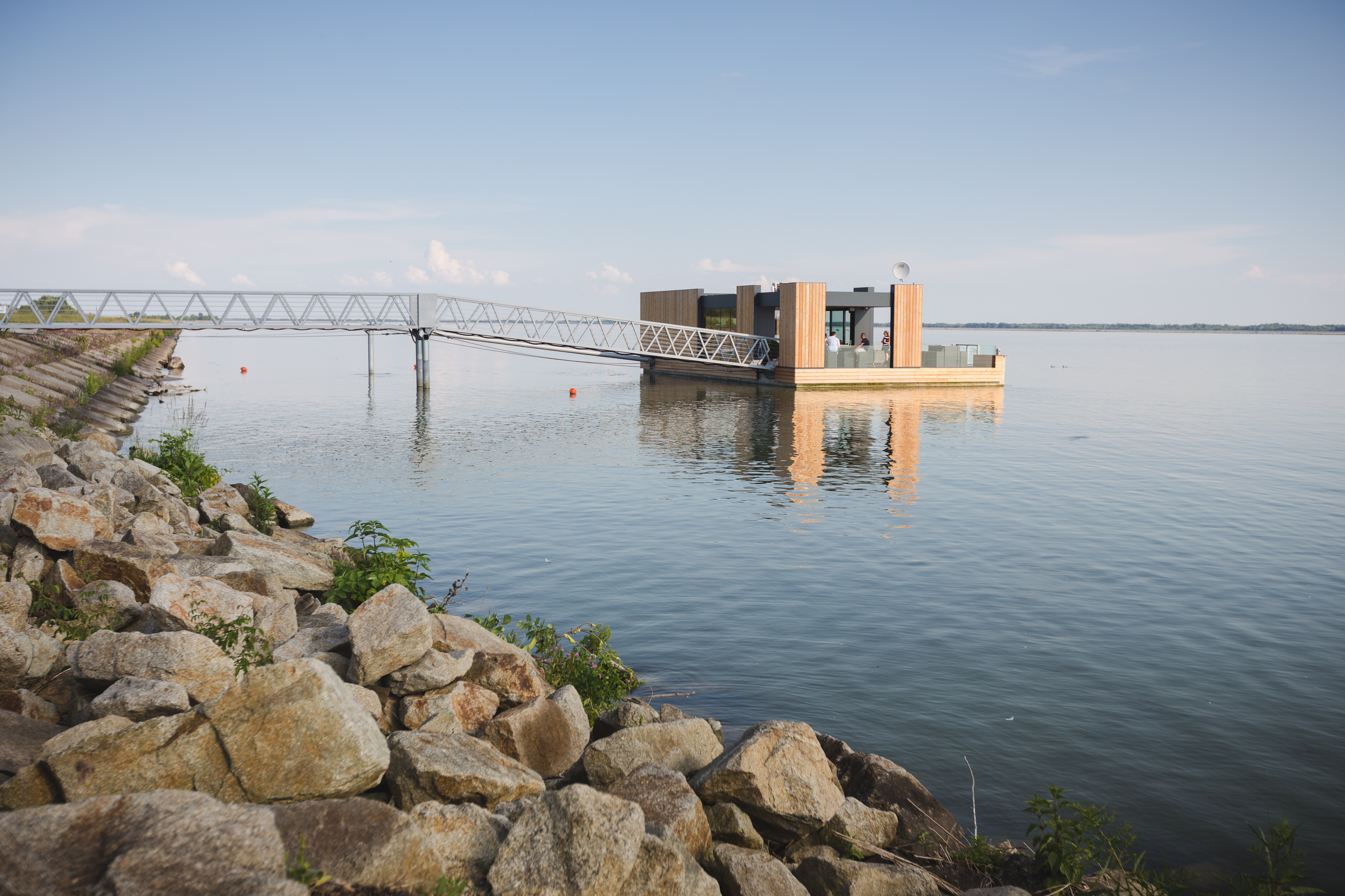 Nakoľko je objekt z brehu pripojený len na elektrickú energiu, je vybavený technológiou úpravy riečnej vody na vodu úžitkovú a vlastnou čistiarňou odpadových vôd zabudovanou v pontóne. Voda je čerpaná priamo z rieky a následne filtrovaná cez sústavu, ktorá pozostáva z dávkovača chlóru, pieskového filtra a uhlíkového filtra. Teplá voda je zabezpečená elektrickými prietokovými ohrievačmi. Na pitie sa používa balená voda. Kúrenie a chladenie objektu zabezpečuje klimatizačná jednotka. Návodná strana móla má vyvýšenú pristávaciu hranu, ktorá je vybavená odierkami a vyväzovacími bitvami pre pristávanie plavidiel.