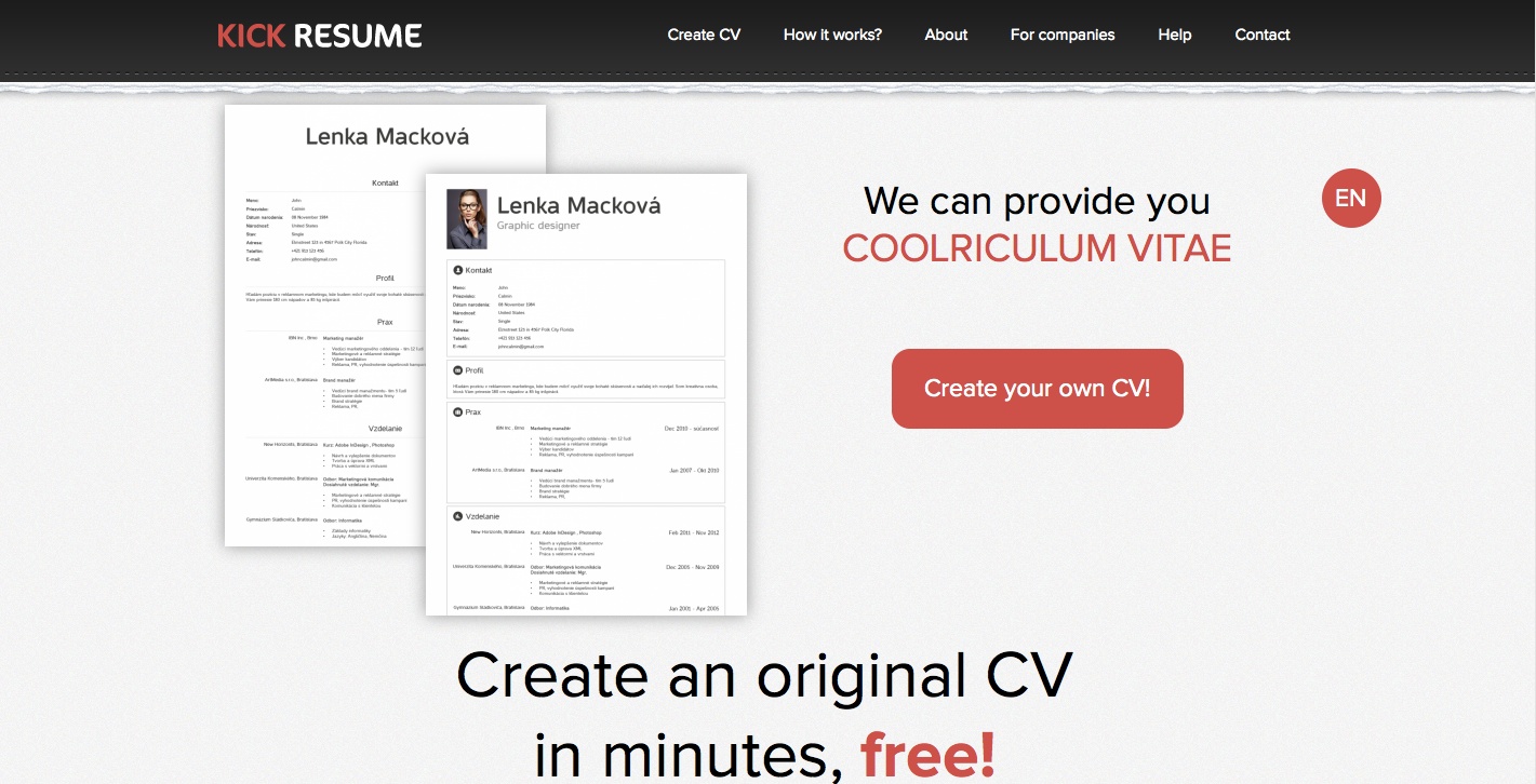 - Ak si hľadáte prácu, určite neprehliadnite nový web na tvorbu CV. Pekný dizajn, ľahké ovládanie a efektný výsledok. Čo viac môžete chcieť?