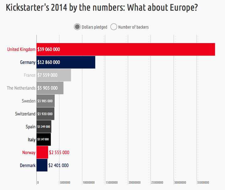 Rok 2014 bol pre Kickstarter extrémne vydareným, keď vyzbieral viacej ako $529 mil. na fundingu pre novovzniknuté projektíky (22 252 úspešne ukončených). Z časti prispela k tejto sume aj Európa. Čiastka $39 mil. a 270.000 „backerov“ prišlo práve zo starého kontinentu.