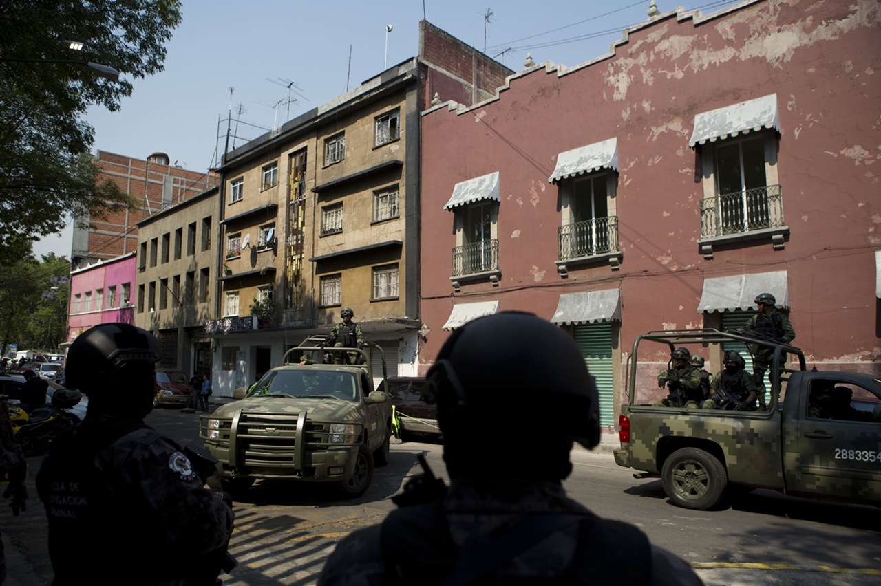 „Často im dáme nejaké peniaze, niekedy sa pýtajú na jedlo, niekedy chcú ženy,“ komentuje návštevy polície jeden, na pohľad profesionálne vyzbrojený, člen mexického kartelu.