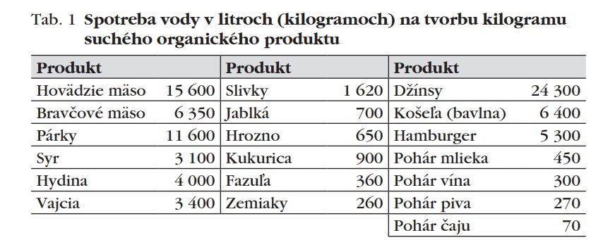 Krajiny, ktoré doma nemajú dostatočné zdroje pitnej vody, nakupujú takéto územia v iných predovšetkým rozvojových krajinách, aby si zaručili potravinovú bezpečnosť v čase krízy. Súčasný dostatok vody neznamená, že ňou môžeme plýtvať Najväčšie množstvo vody, až 80% sa spotrebuje v poľnohospodárstve. Osobná a komunálna spotreba tvorí len 20 %. V tabuľke uvidíte, v ktorých priemysloch sa voda míňa najviac. Vedie živočíšna výroba a odevný priemysel.