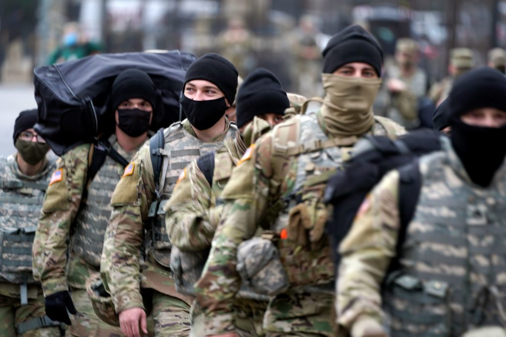 Spojené štáty tak nevyzerajú, že by sa pripravovali na slávnostný moment, ale skôr na občiansku vojnu. Okrem vojakov lemujúcich ulice vo Washingtone D. C. mesto obklopujú ostnaté ploty i betónové barikády. Budovu Kapitolu a aj budovy všetkých hlavných miest v 50 štátoch zadebňujú proti prípadným útokom. Vo všetkých hrozí násilie.