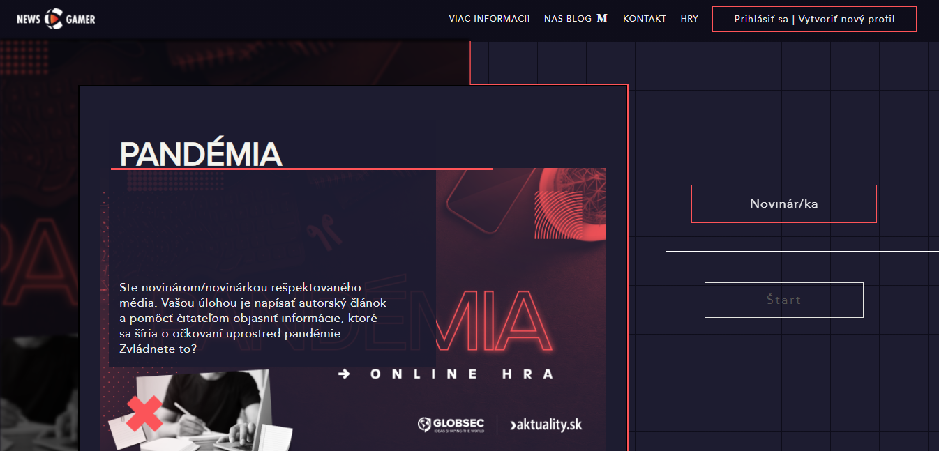 Organizácia GLOBSEC vytvorila zaujímavú hru na internete, ktorej podstatou je vyskúšať si prácu novinára v čase pandémie. Táto hra sa nachádza na webovom prehliadači a nesie názov Pandémia.