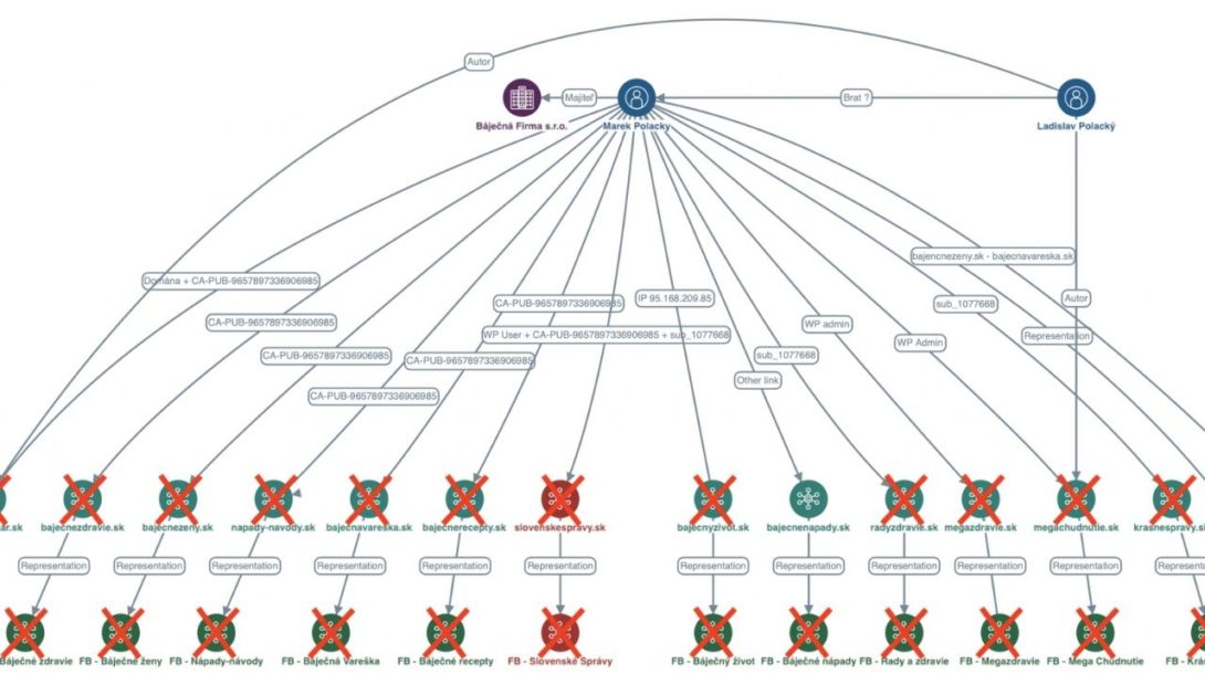 Infosecurity.sk odkrylo doteraz najväčšiu sieť šarlatánskych a dezinformačných webov. Podľa ich zistení stojí za 15-timi facebookovými stránkami majiteľ firmy Báječná firma s.r.o. Marek Polacký.