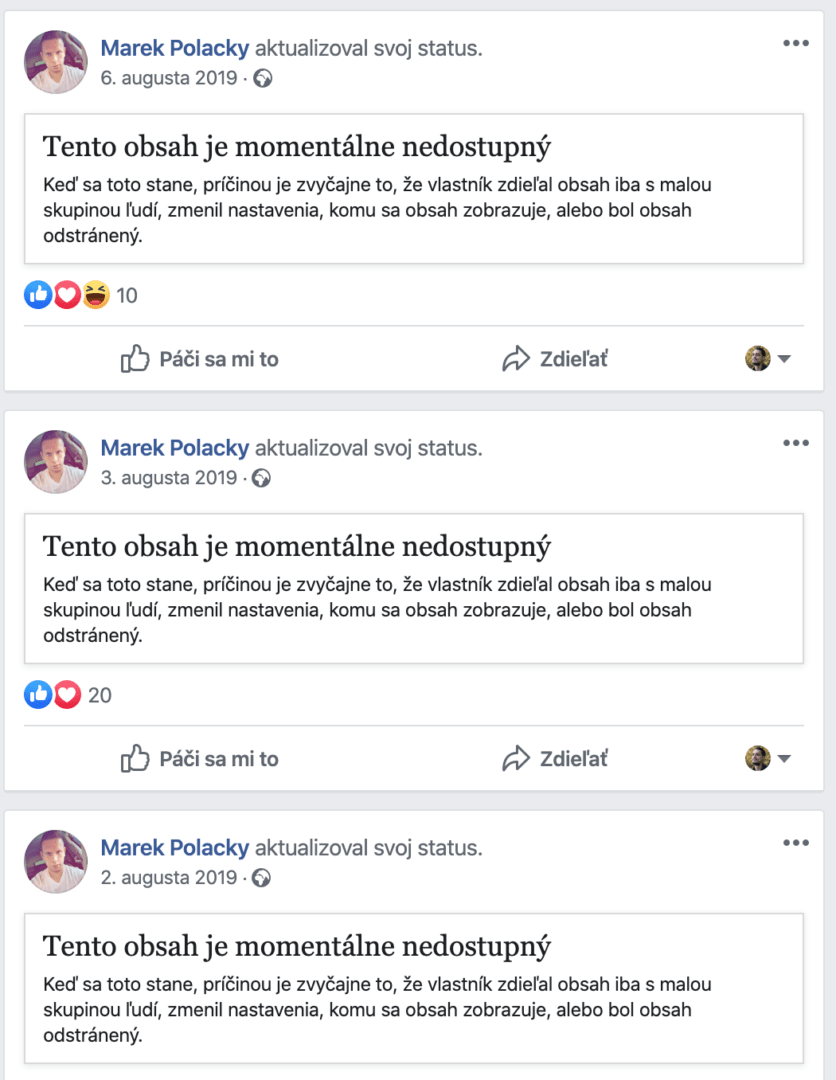 Všetky stránky na Facebooku sú momentálne nedostupné a nefungujú ani ich hlavné weby. Polackého statusy na Facebooku sú taktiež nedostupné.