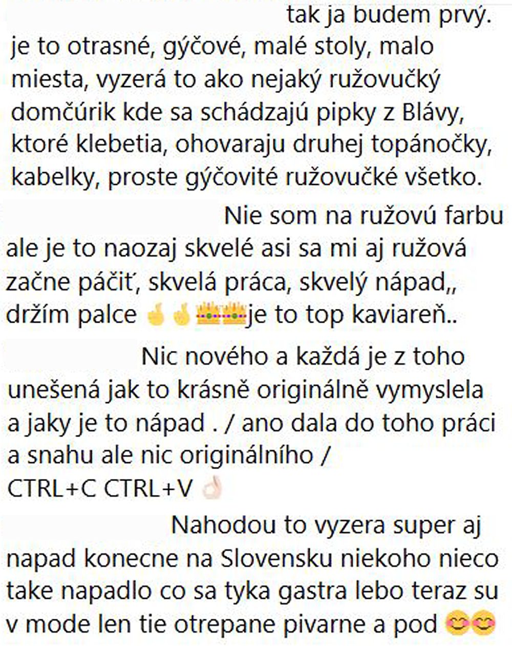 Fanúšikovia na svoje komentáre nenechali dlho čakať. Sú pochvalné aj negatívne. Niektorí si priestor inšpirovaný zahraničnými „posh“ kaviarničkami milujú, iní kritizujú gýčovosť, ale aj malé priestory.