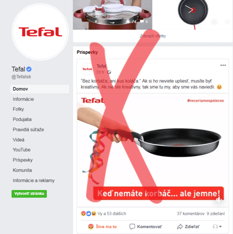 Iniciatíva Sexistický kix adresovala dvom z nich otvorené listy s upozornením na problematickosť vizuálov a ponúkla im v prípade záujmu konzultáciu v oblasti nesexistickej reklamy. List adresovaný Tefalu bol reakciou na príspevok spoločnosti na sociálnej sieti, v ktorom bola zobrazená panvica ako veľkonočný korbáč spolu so sloganom „Keď nemáte korbáč… ale jemne“. Iniciatíva v liste vyjadrila názor, že „zľahčovanie násilia v reklamách vedie k jeho normalizovaniu v spoločnosti. Takéto prezentovanie vnímame ako prekročenie hranice etickosti reklamy.“